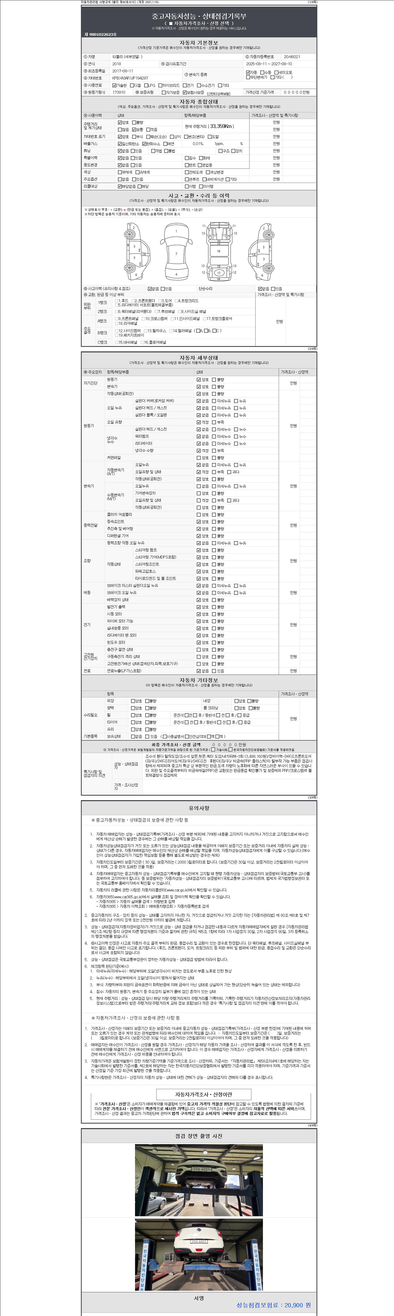 2. 차량 등록증이나 성능점검지 등을 상담자에게 요청및 확인하시고 사전에 미리 점검 하시기를 권유드립니다.