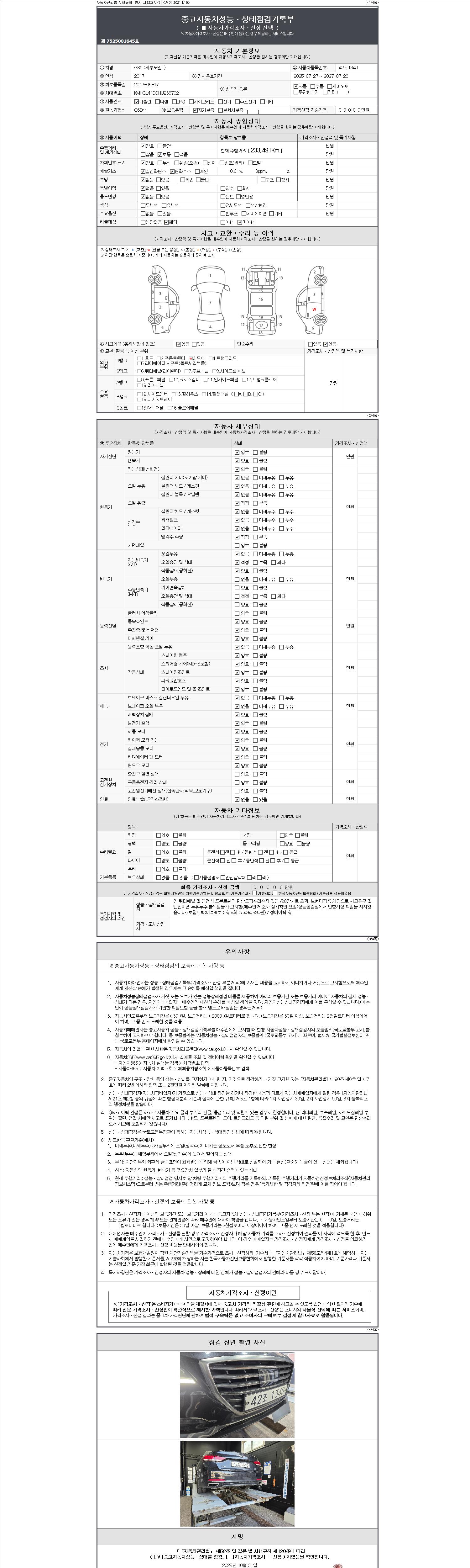 2. 차량 등록증이나 성능점검지 등을 상담자에게 요청및 확인하시고 사전에 미리 점검 하시기를 권유드립니다.