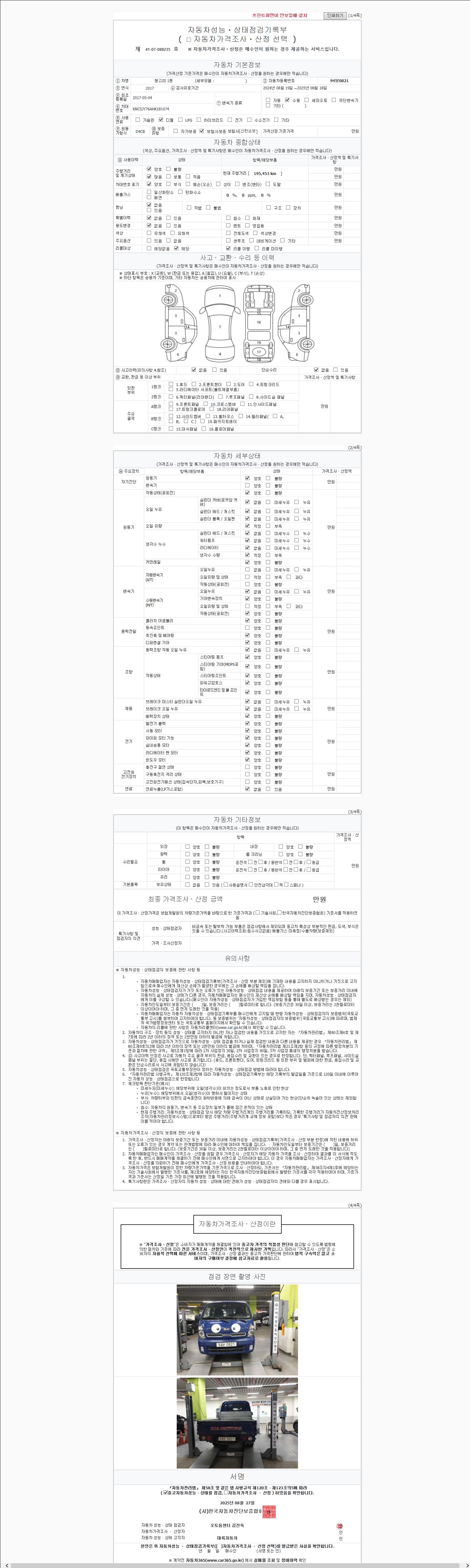 사고유무 성능기록부 참조 제시번호 제 2147483647 호