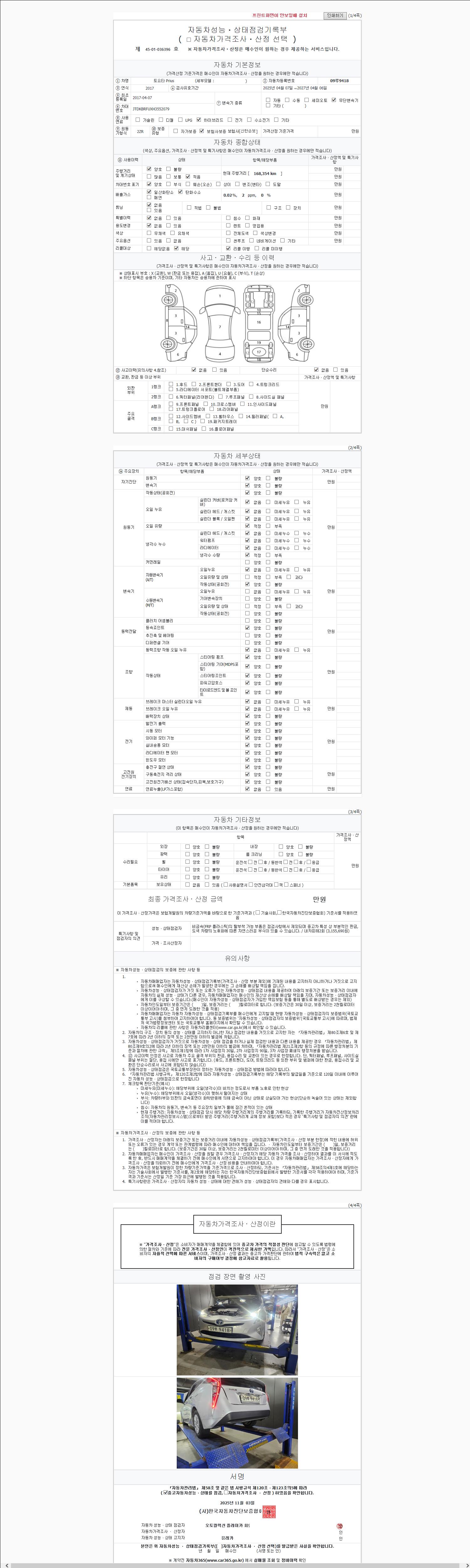 사고유무 성능기록부 참조 제시번호 제 2147483647 호