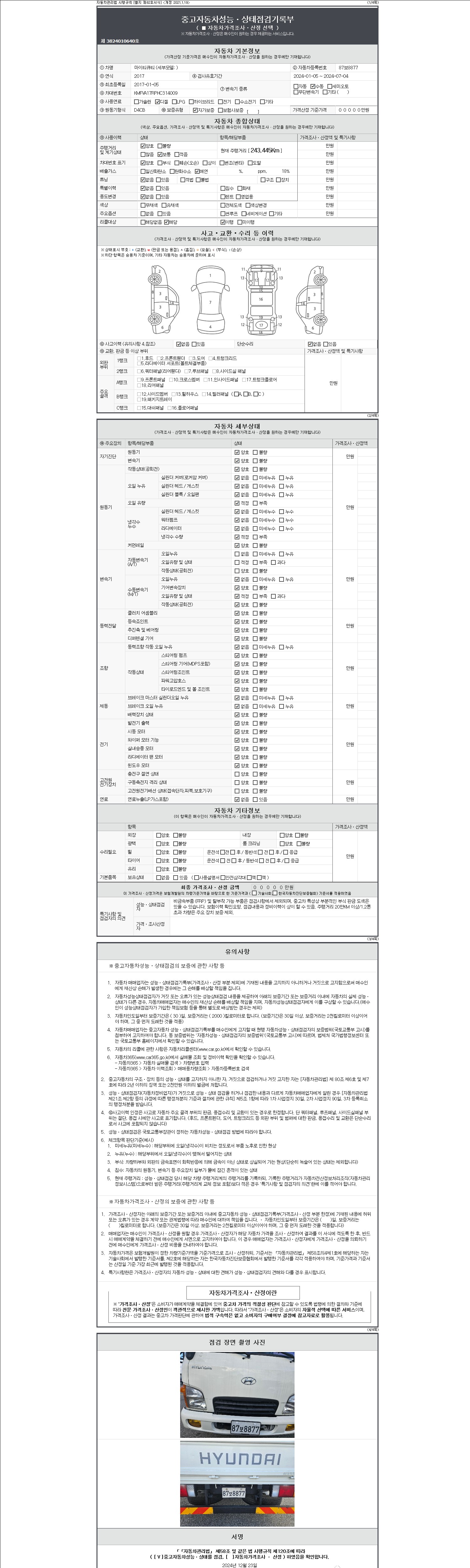 2. 차량 등록증이나 성능점검지 등을 상담자에게 요청및 확인하시고 사전에 미리 점검 하시기를 권유드립니다.