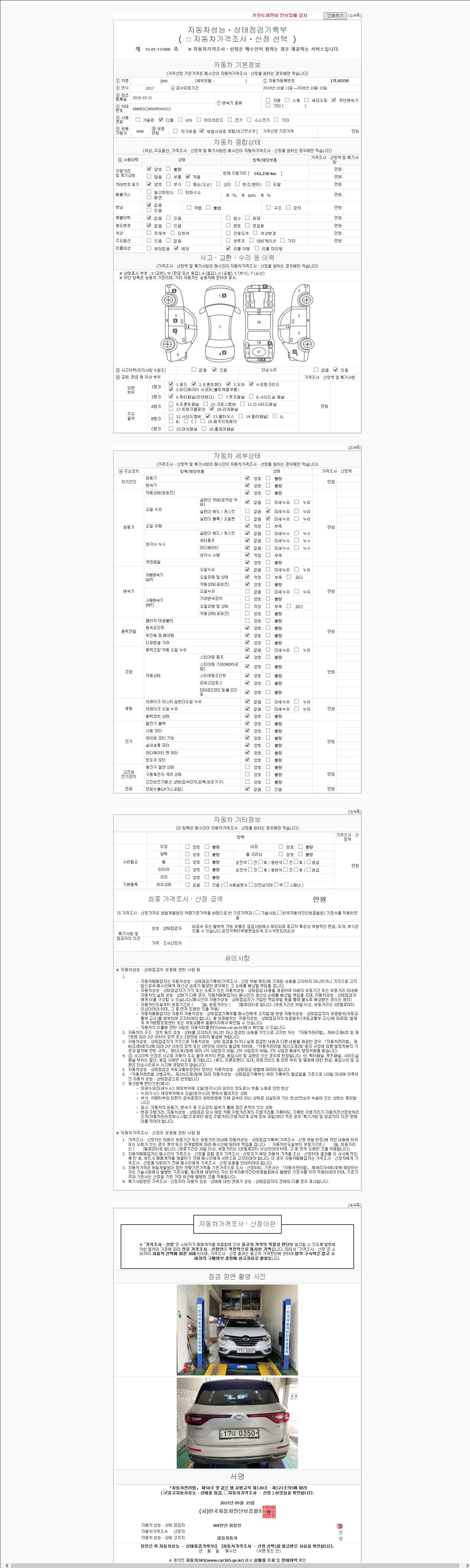 2. 차량 등록증이나 성능점검지 등을 상담자에게 요청및 확인하시고 사전에 미리 점검 하시기를 권유드립니다.