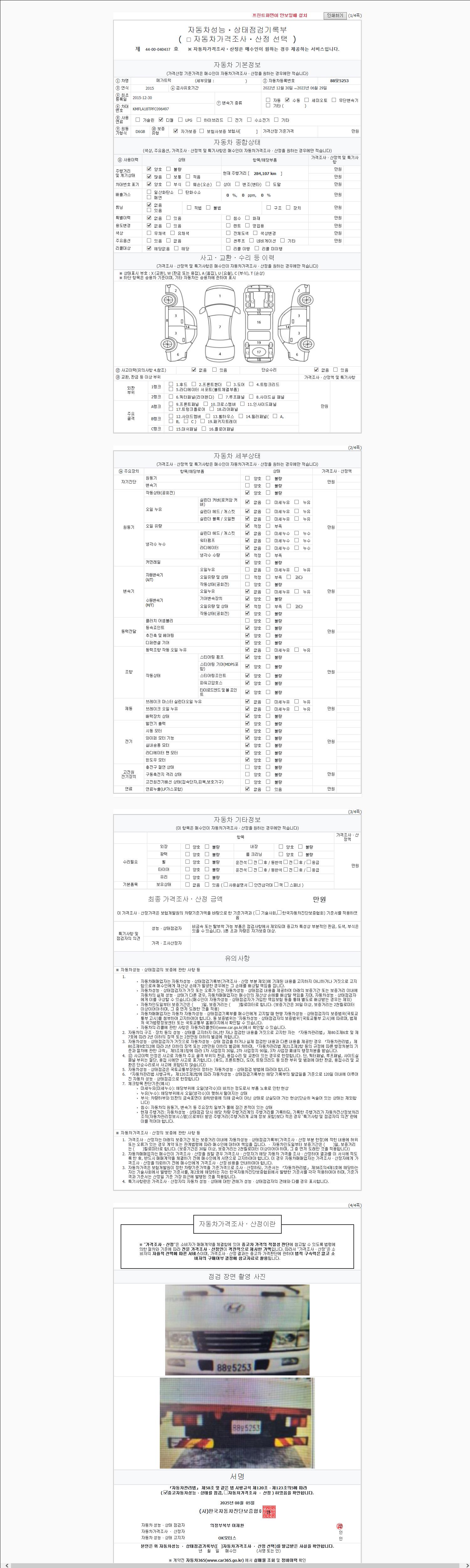 사고유무 성능기록부 참조 제시번호 제 2024108494 호