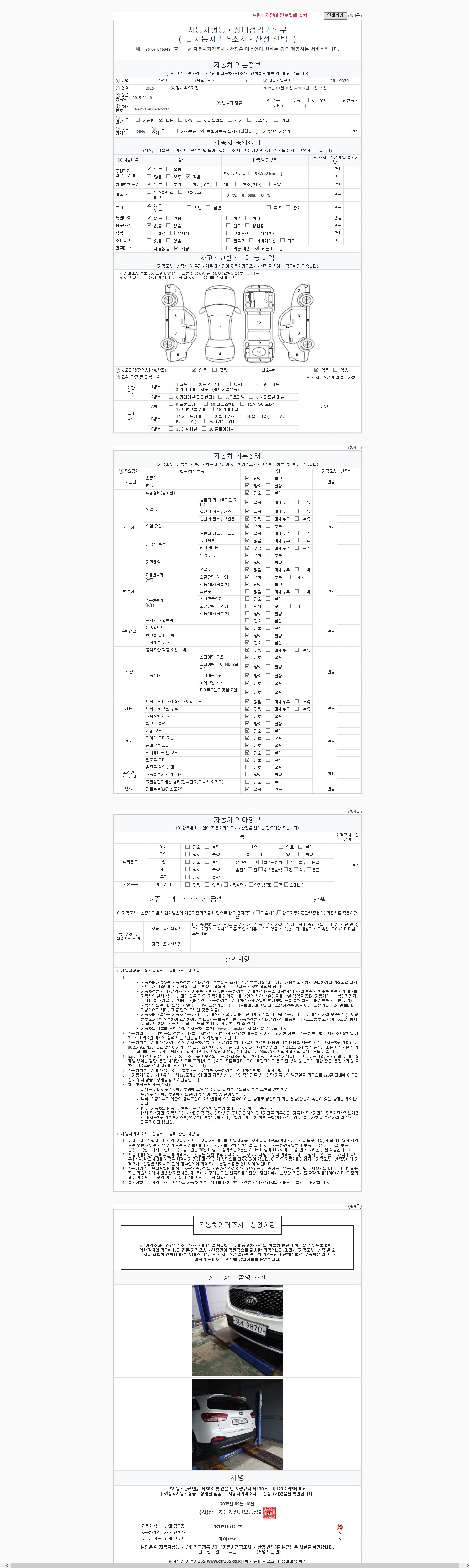 2. 차량 등록증이나 성능점검지 등을 상담자에게 요청및 확인하시고 사전에 미리 점검 하시기를 권유드립니다.