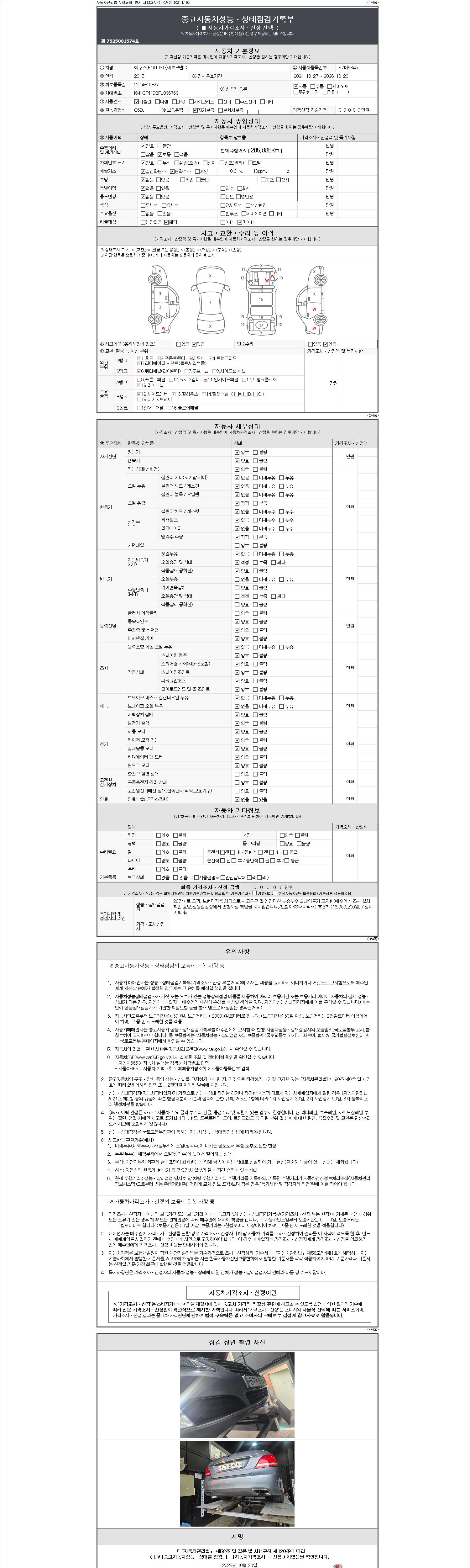 2. 차량 등록증이나 성능점검지 등을 상담자에게 요청및 확인하시고 사전에 미리 점검 하시기를 권유드립니다.