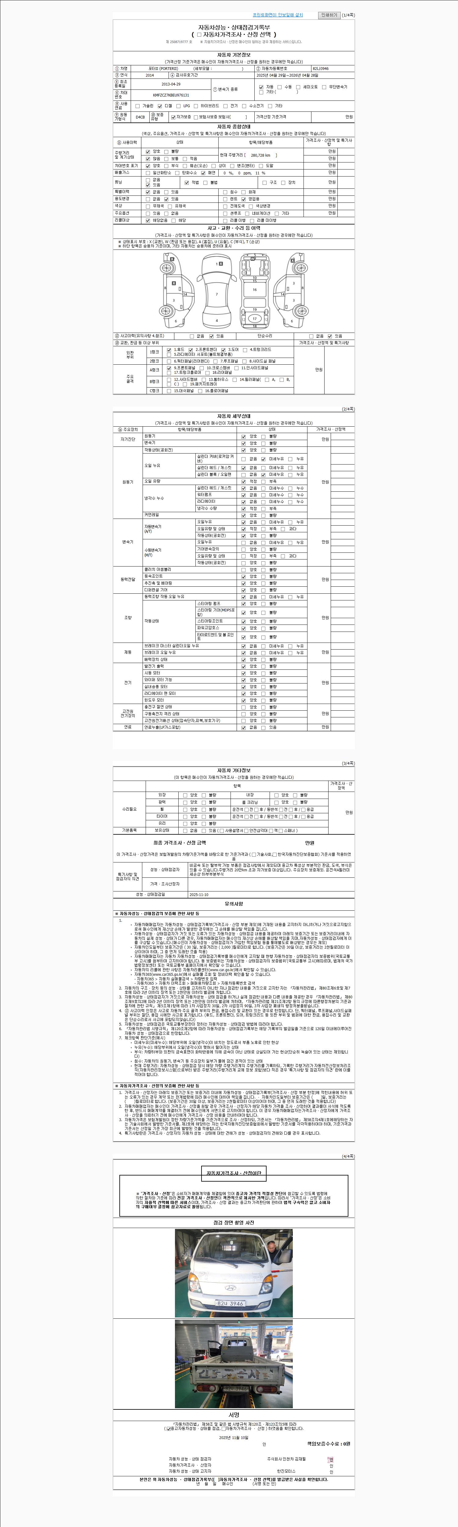 | 사고유무 | 성능기록부 참조 | 제시번호 | 제 2025060938 호 |