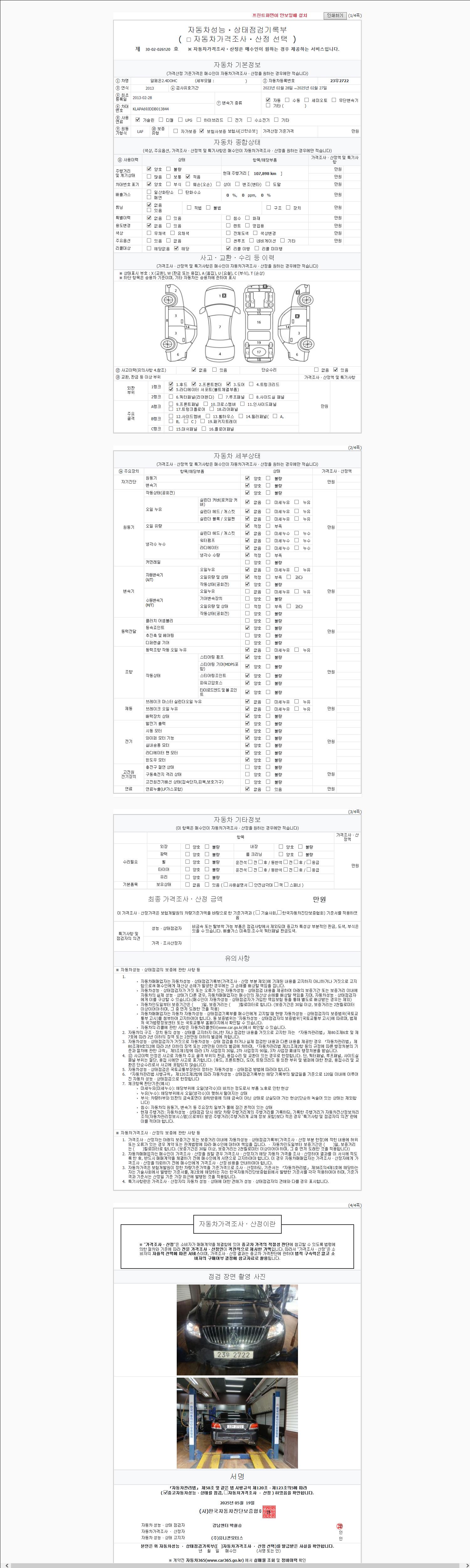 2. 차량 등록증이나 성능점검지 등을 상담자에게 요청및 확인하시고 사전에 미리 점검 하시기를 권유드립니다.