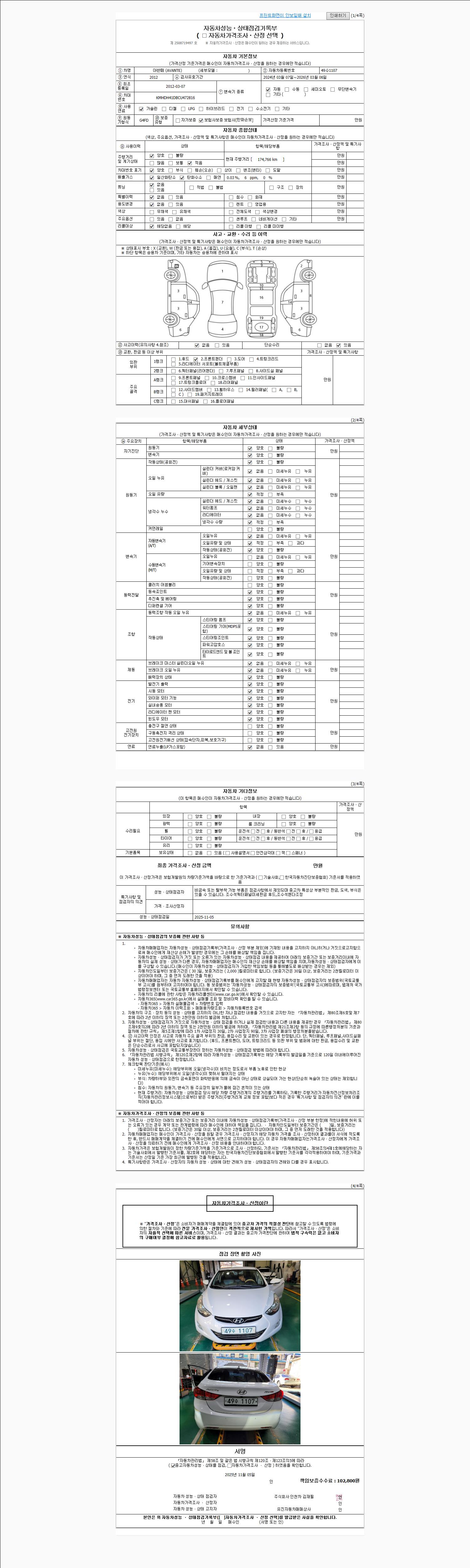 2. 차량 등록증이나 성능점검지 등을 상담자에게 요청및 확인하시고 사전에 미리 점검 하시기를 권유드립니다.