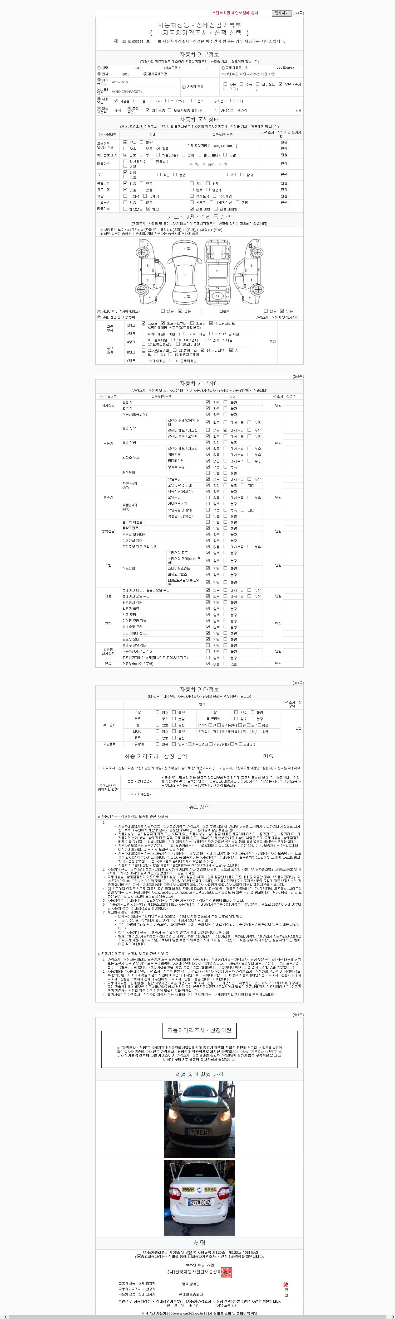 2. 차량 등록증이나 성능점검지 등을 상담자에게 요청및 확인하시고 사전에 미리 점검 하시기를 권유드립니다.