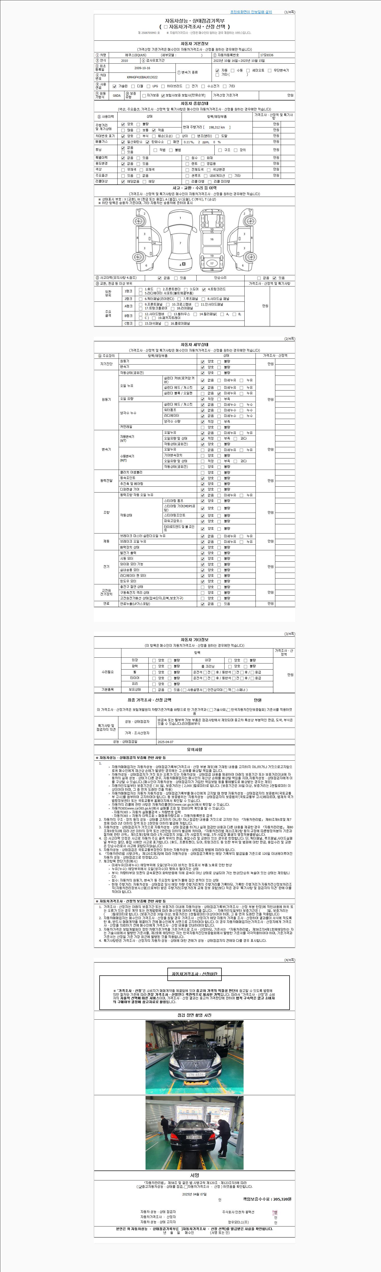 | 사고유무 | 성능기록부 참조 | 제시번호 | 제 2025018000 호 |