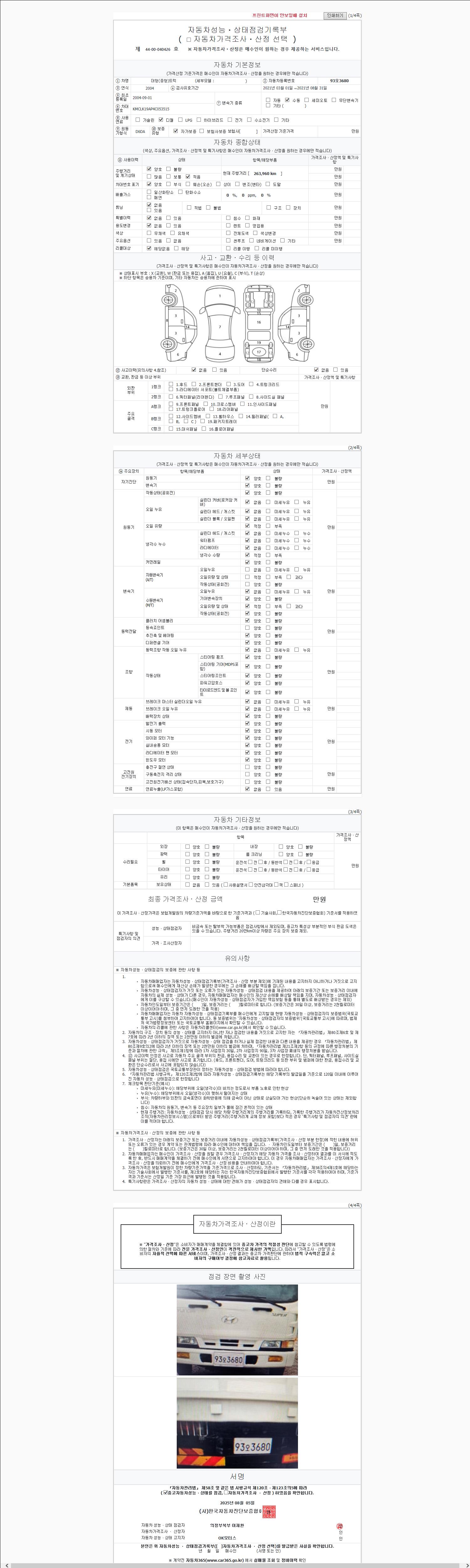 | 주행거리 | 263,960 km | 차량번호 | 93오3680 |