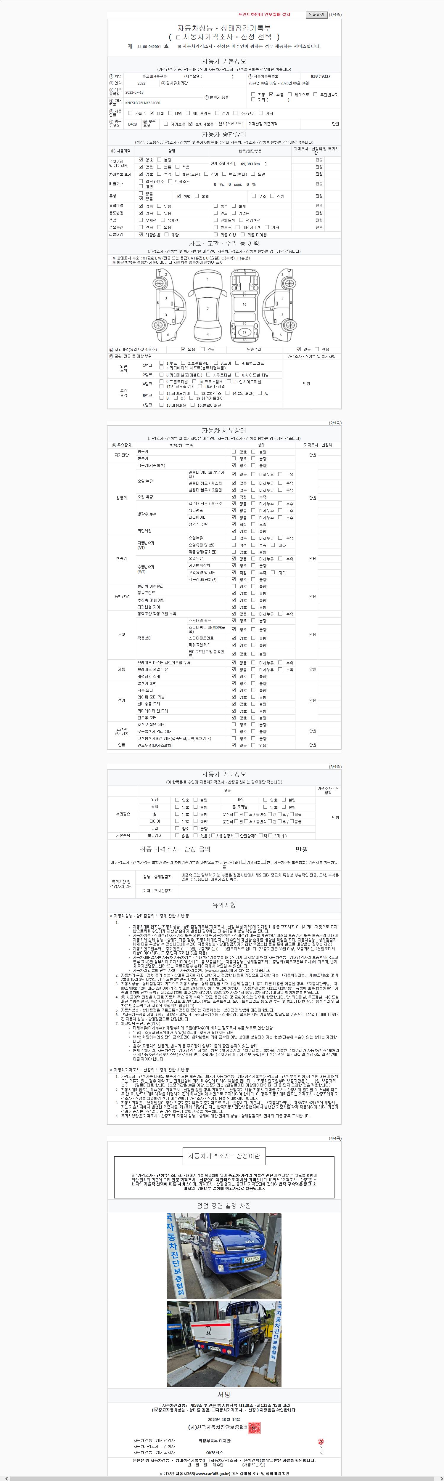 사고유무 성능기록부 참조 제시번호 제 2025175841 호