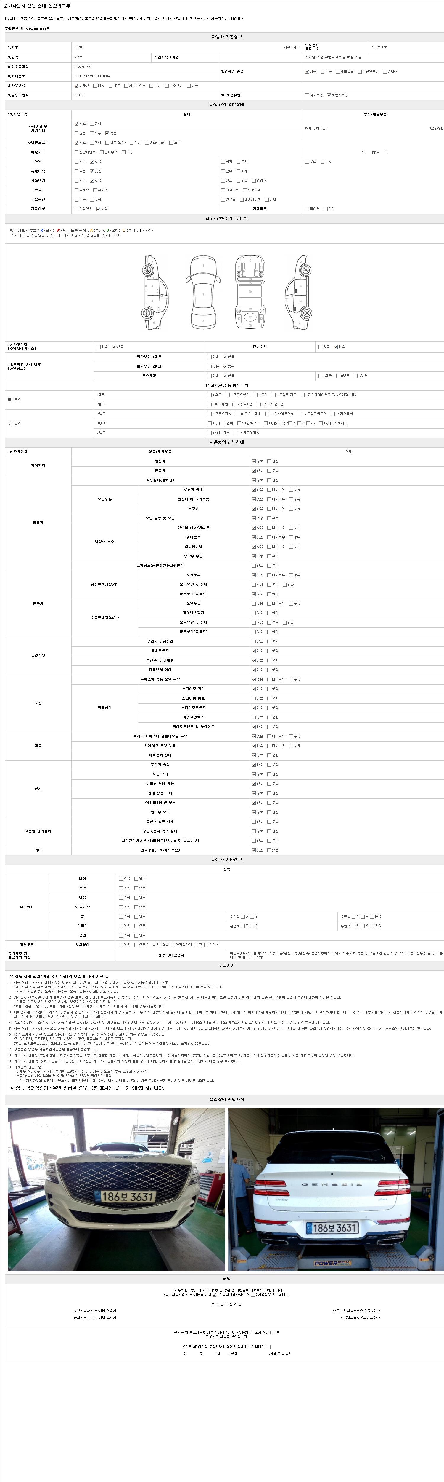 사고유무 성능기록부 참조 제시번호 제 2025029383 호