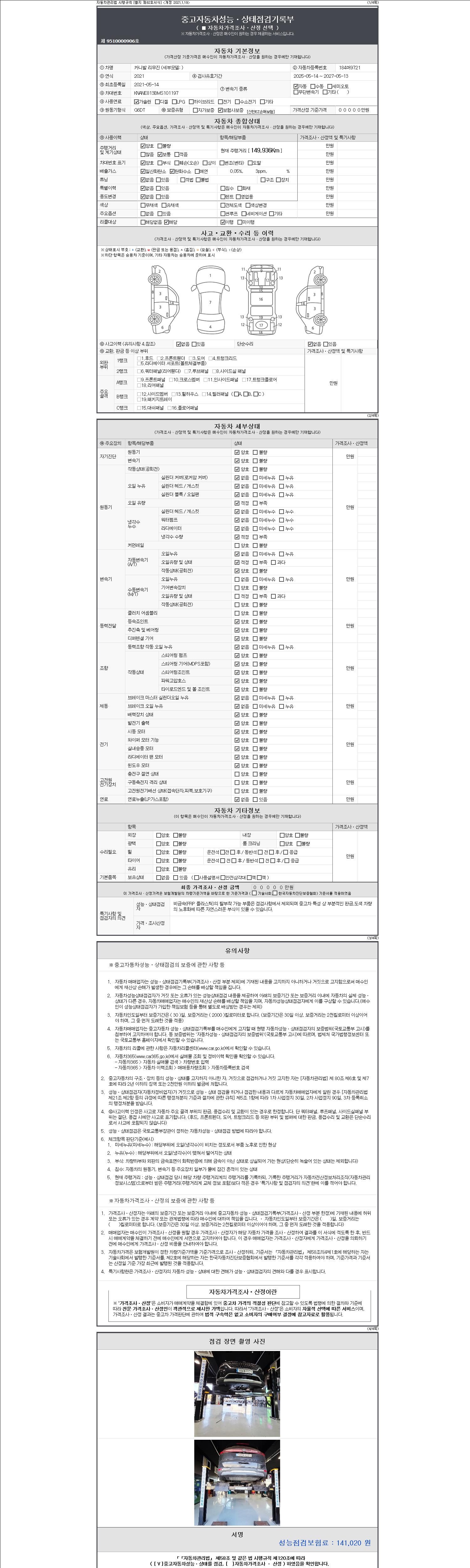 -중고자동차 매매업자를 통해 차량을 구입하실 경우 반드시 "중고자동차 성능, 상태점검 기록부"를 교뷰 받으셔야 하며, 매매업자는 반드시 의무 교부 하여야 압니다.