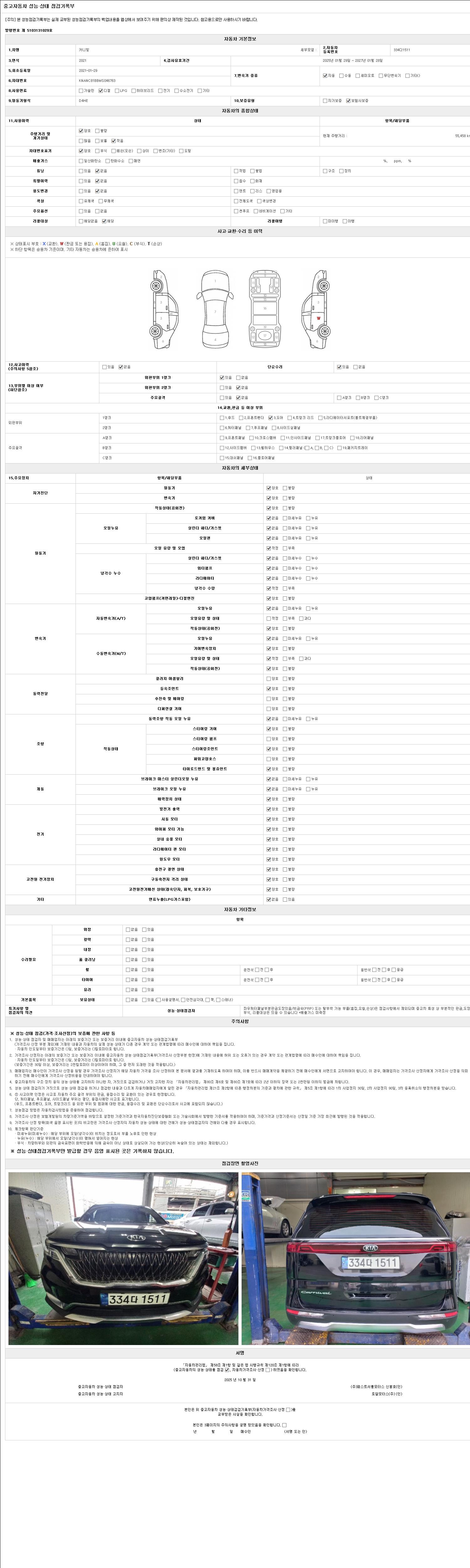 2. 차량 등록증이나 성능점검지 등을 상담자에게 요청및 확인하시고 사전에 미리 점검 하시기를 권유드립니다.