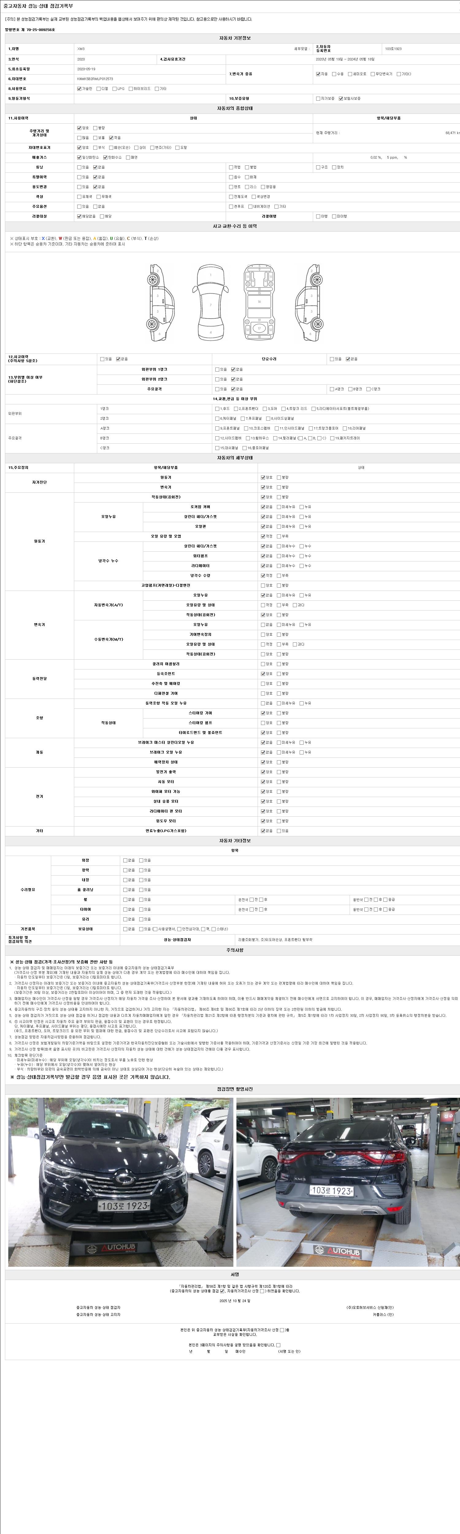 2. 차량 등록증이나 성능점검지 등을 상담자에게 요청및 확인하시고 사전에 미리 점검 하시기를 권유드립니다.