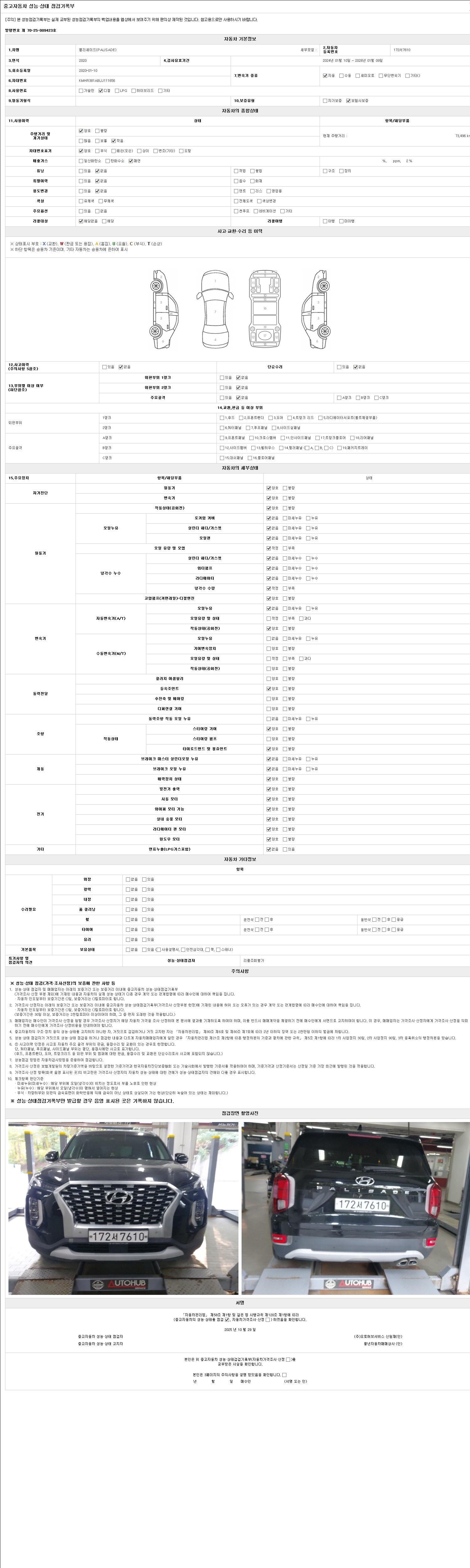 2. 차량 등록증이나 성능점검지 등을 상담자에게 요청및 확인하시고 사전에 미리 점검 하시기를 권유드립니다.