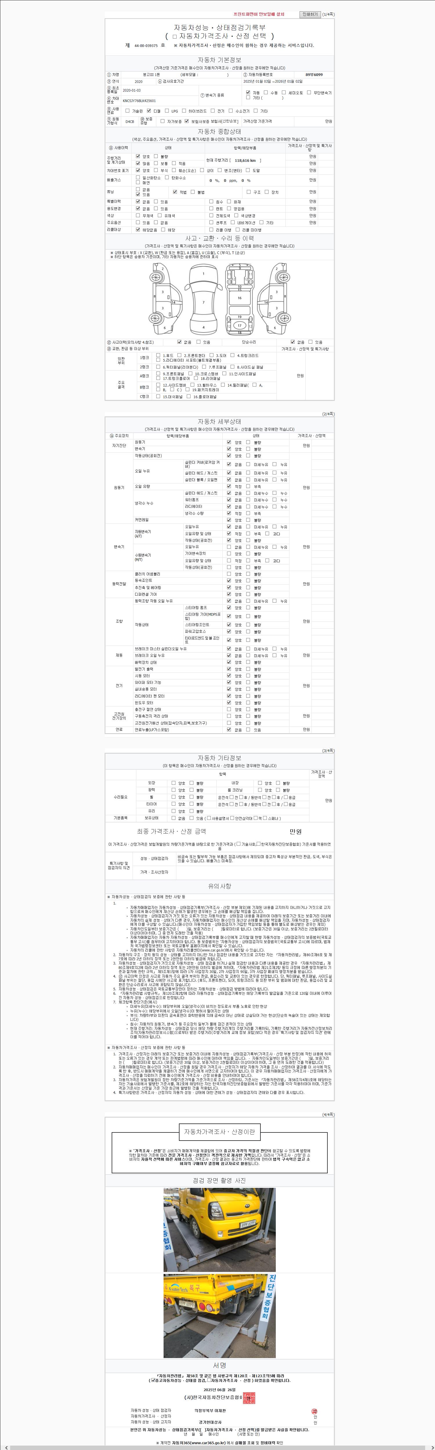 | 주행거리 | 118,616 km | 차량번호 | 89부6099 |