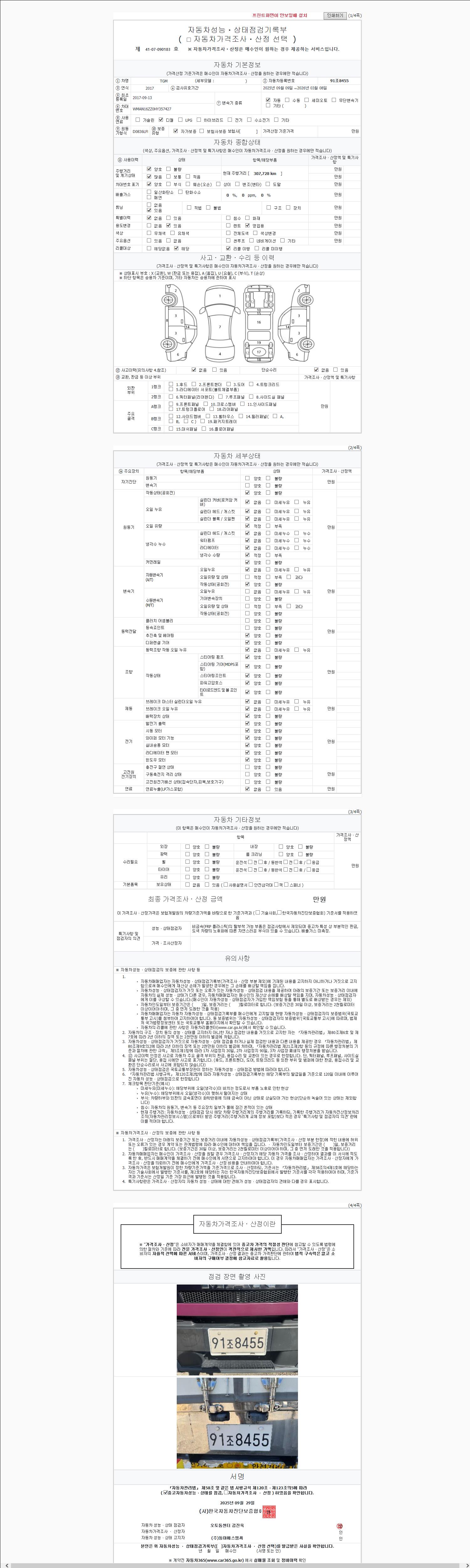 | 주행거리 | 307,306 km | 차량번호 | 91조8455 |