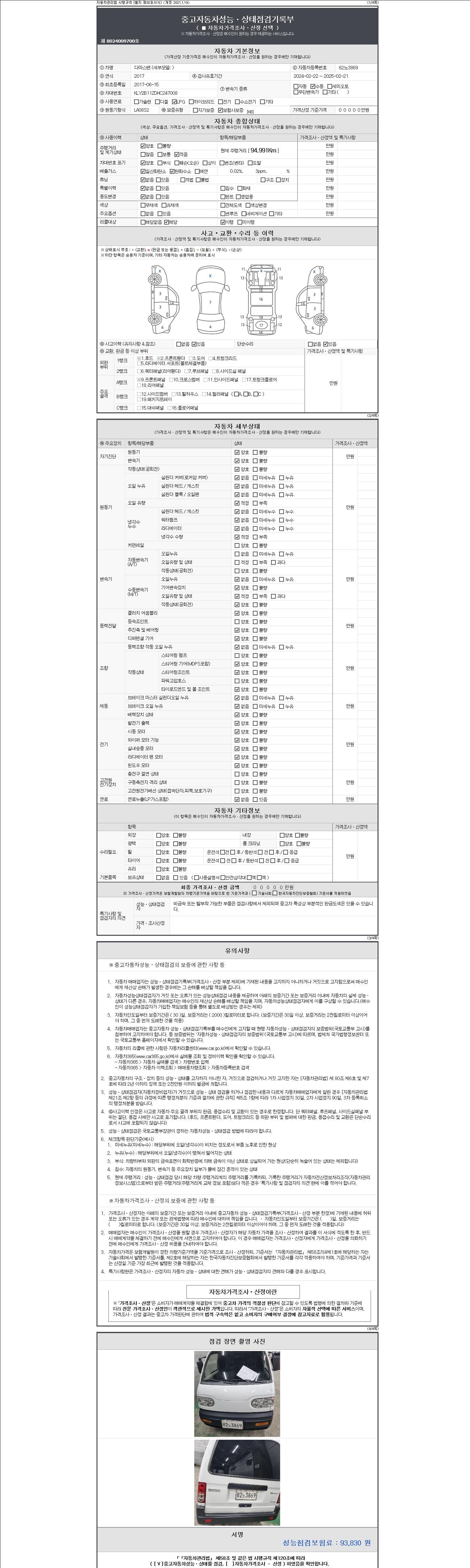 | 주행거리 | 94,991 km | 차량번호 | 82노3869 |