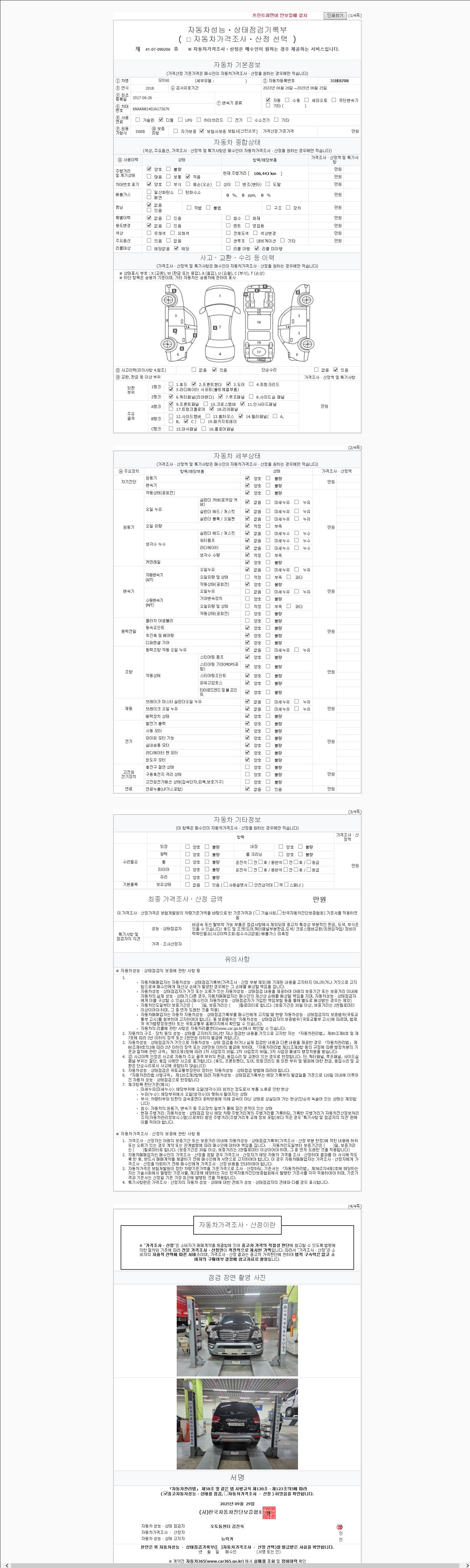 | 주행거리 | 106,442 km | 차량번호 | 31버8708 |