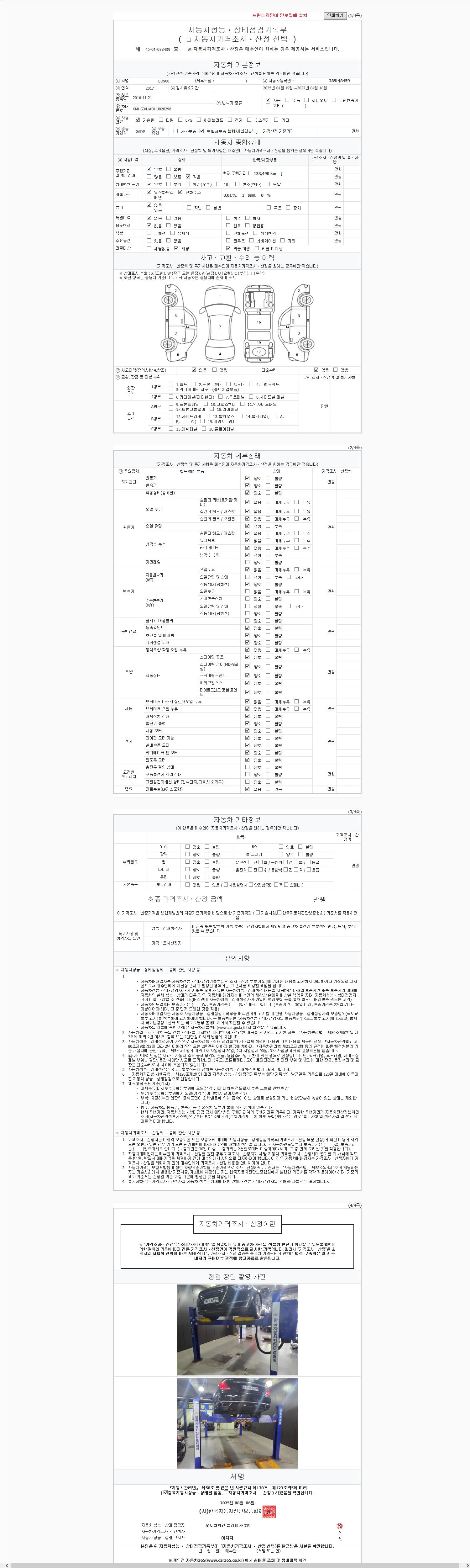 2. 차량 등록증이나 성능점검지 등을 상담자에게 요청및 확인하시고 사전에 미리 점검 하시기를 권유드립니다.