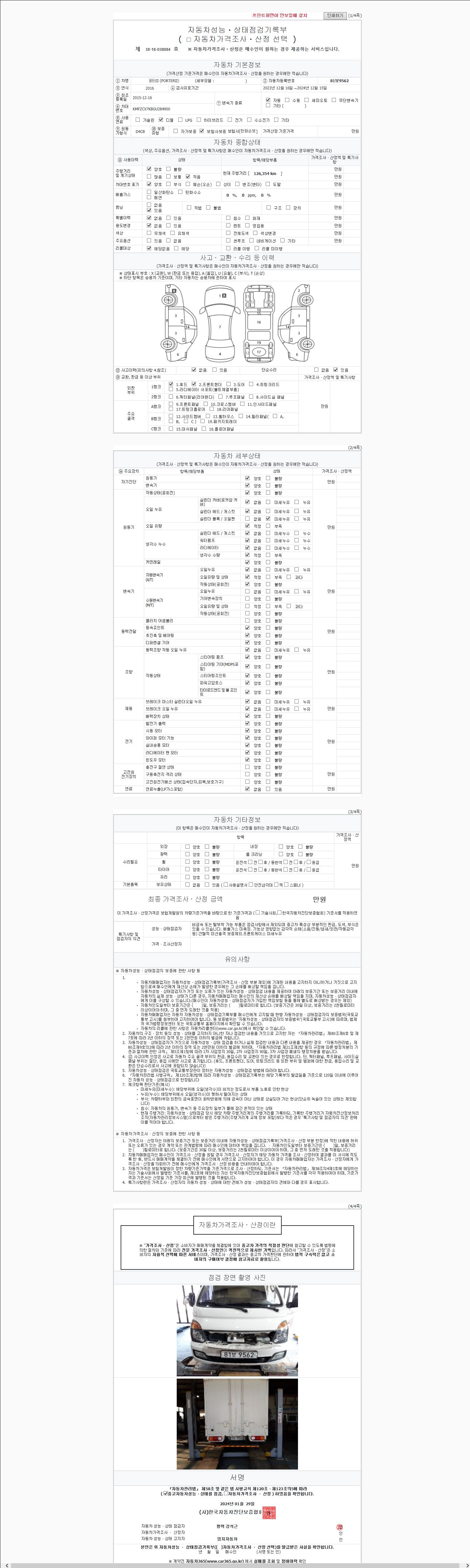 사고유무 성능기록부 참조 제시번호 제 2147483647 호