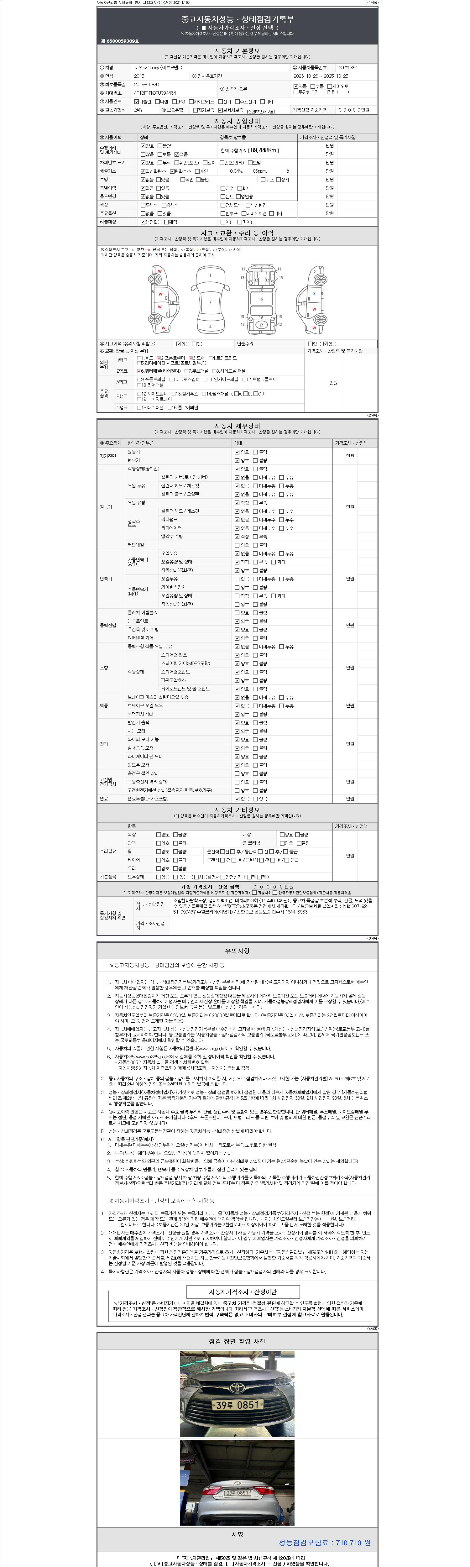 -중고자동차 매매업자를 통해 차량을 구입하실 경우 반드시 "중고자동차 성능, 상태점검 기록부"를 교뷰 받으셔야 하며, 매매업자는 반드시 의무 교부 하여야 압니다.