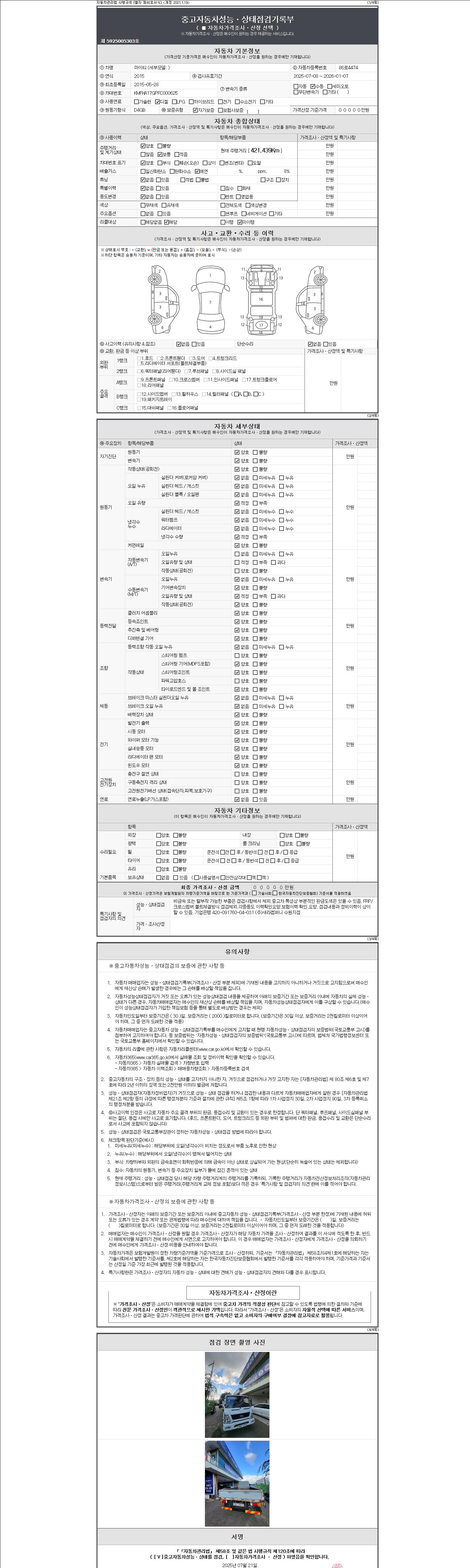 2. 차량 등록증이나 성능점검지 등을 상담자에게 요청및 확인하시고 사전에 미리 점검 하시기를 권유드립니다.