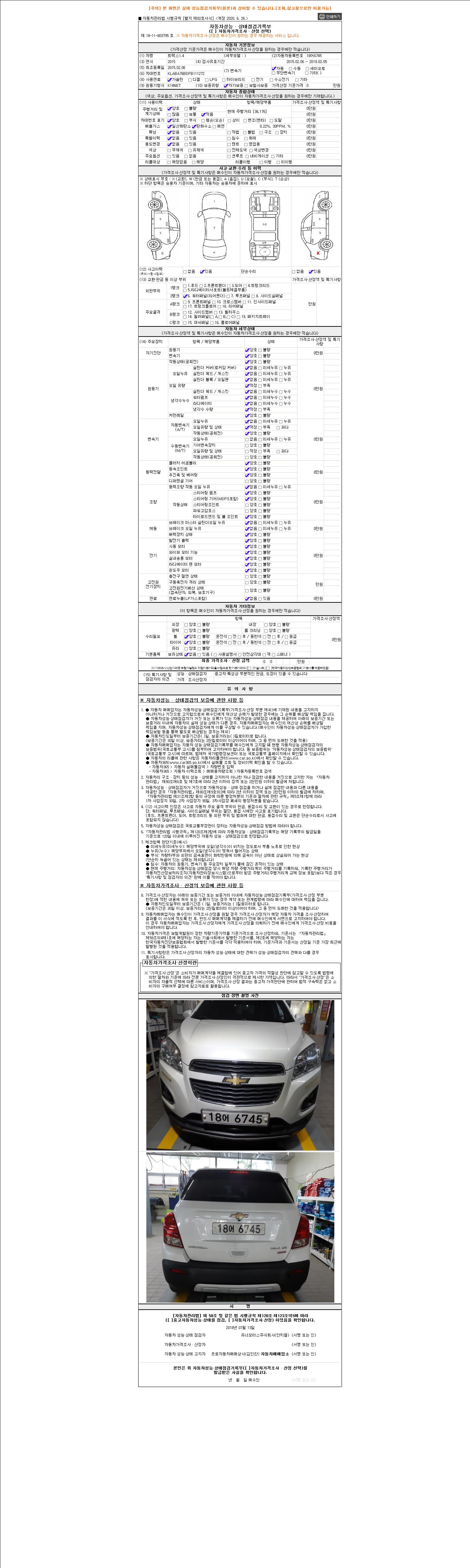 2. 차량 등록증이나 성능점검지 등을 상담자에게 요청및 확인하시고 사전에 미리 점검 하시기를 권유드립니다.