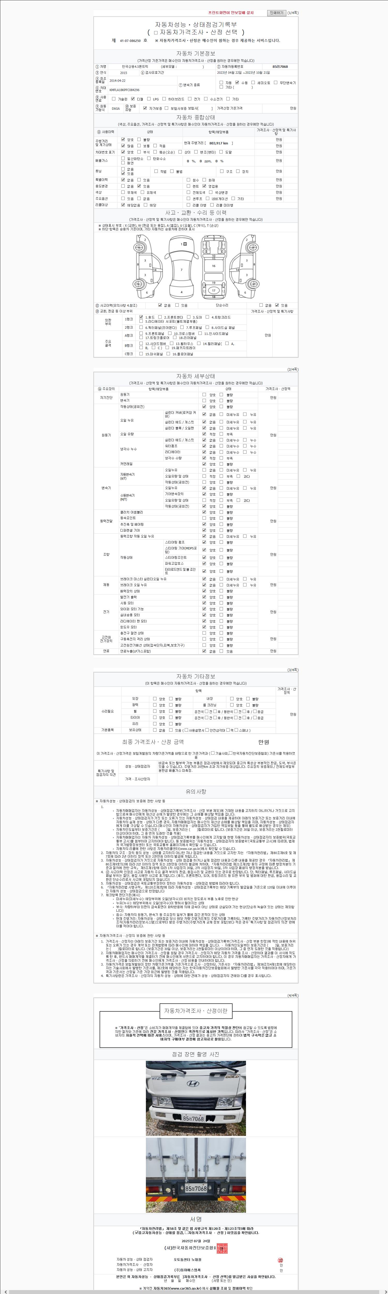 | 주행거리 | 803,436 km | 차량번호 | 85러7068 |