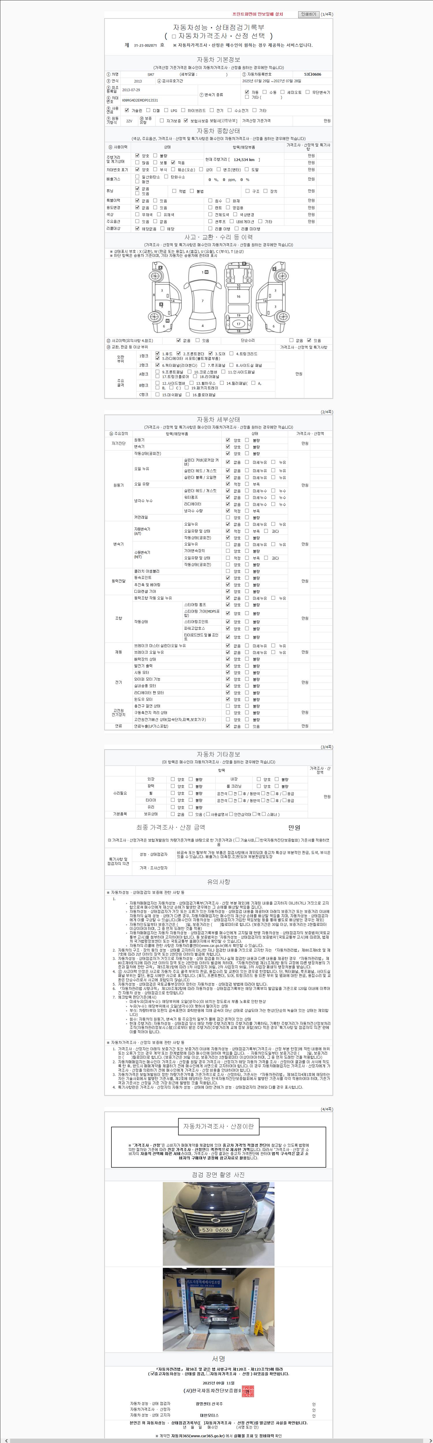 2. 차량 등록증이나 성능점검지 등을 상담자에게 요청및 확인하시고 사전에 미리 점검 하시기를 권유드립니다.