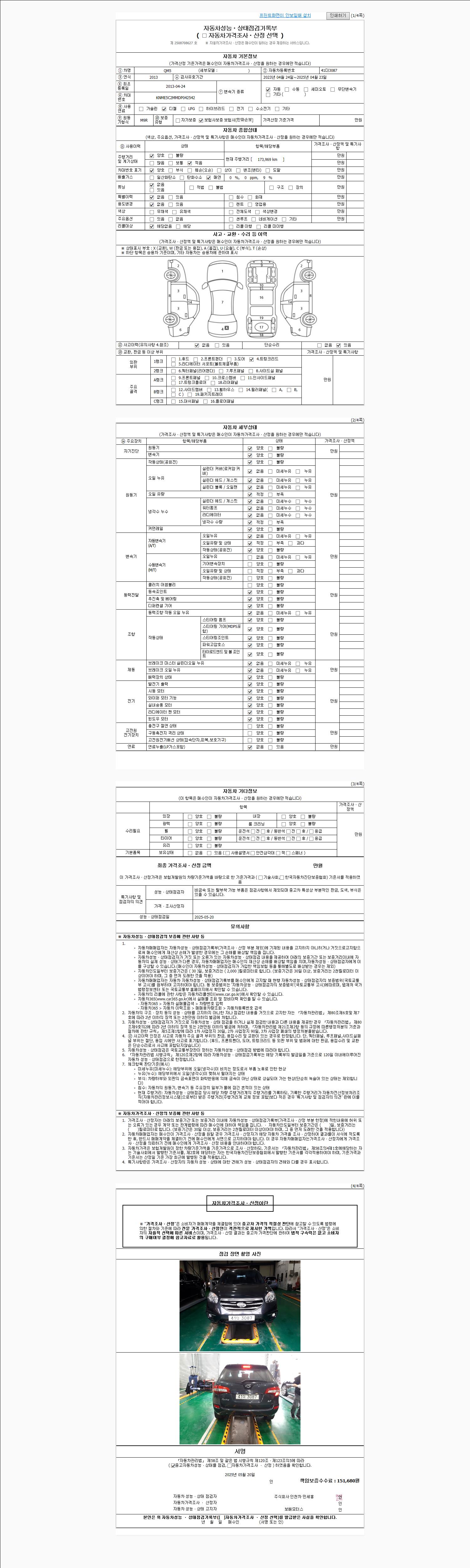 2. 차량 등록증이나 성능점검지 등을 상담자에게 요청및 확인하시고 사전에 미리 점검 하시기를 권유드립니다.