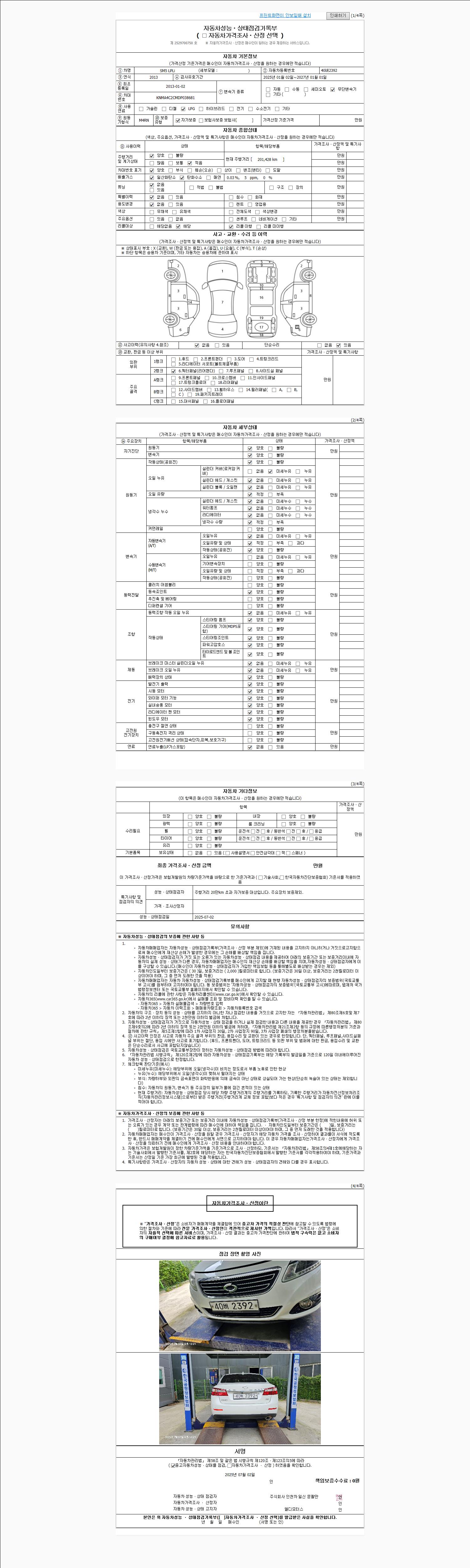 오토|LPG|2013년 1월|201,452 km 40버2392| cc|흰색|무사고 |
