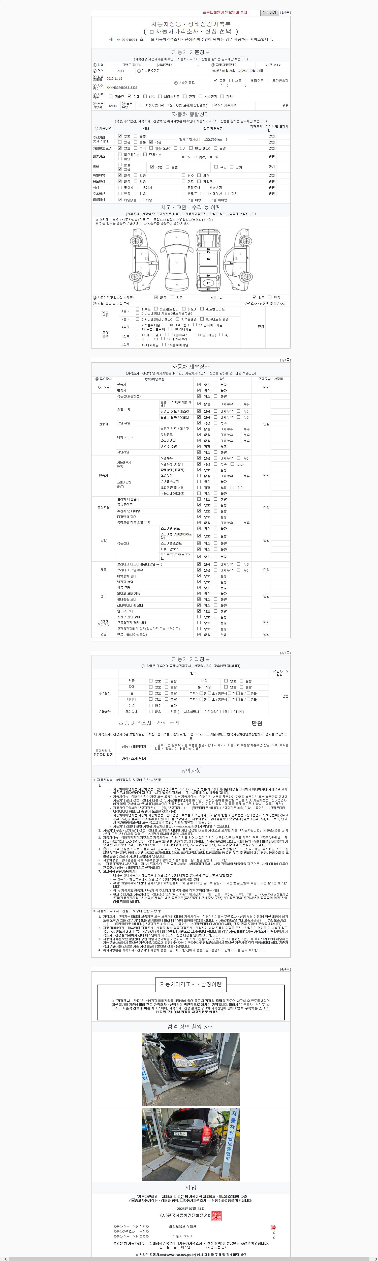 2. 차량 등록증이나 성능점검지 등을 상담자에게 요청및 확인하시고 사전에 미리 점검 하시기를 권유드립니다.