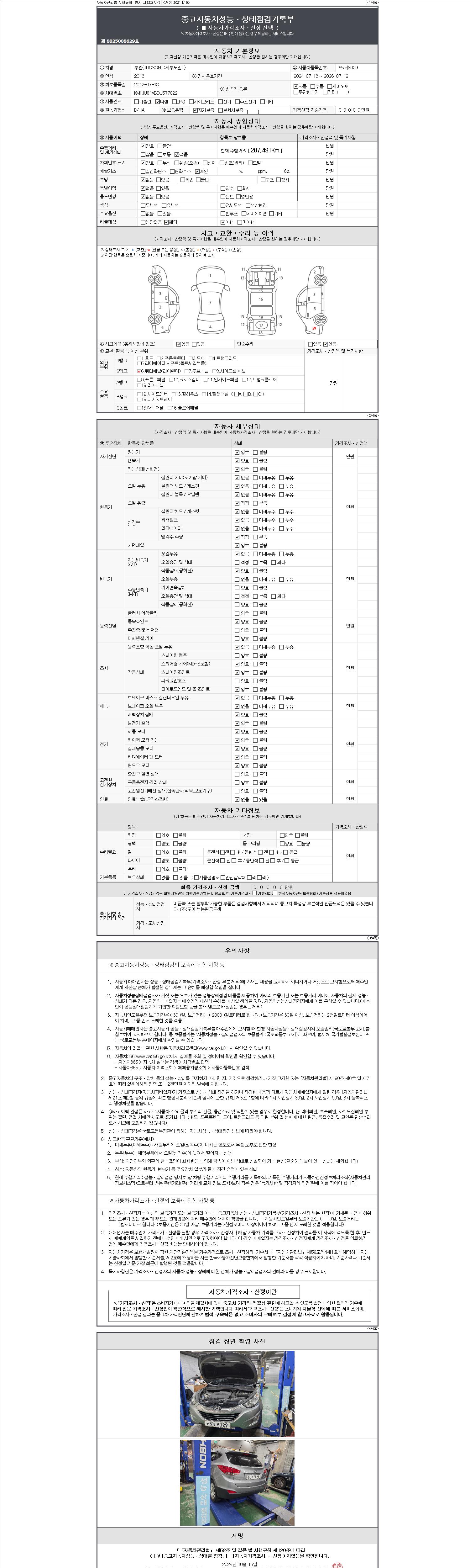 2. 차량 등록증이나 성능점검지 등을 상담자에게 요청및 확인하시고 사전에 미리 점검 하시기를 권유드립니다.