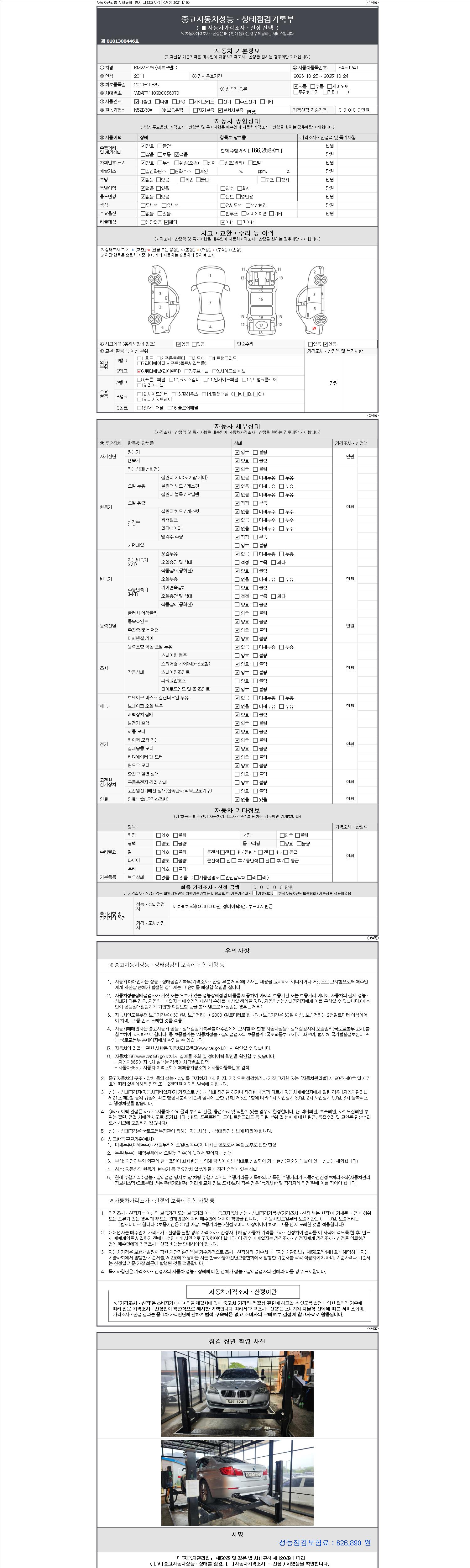 -중고자동차 매매업자를 통해 차량을 구입하실 경우 반드시 "중고자동차 성능, 상태점검 기록부"를 교뷰 받으셔야 하며, 매매업자는 반드시 의무 교부 하여야 압니다.