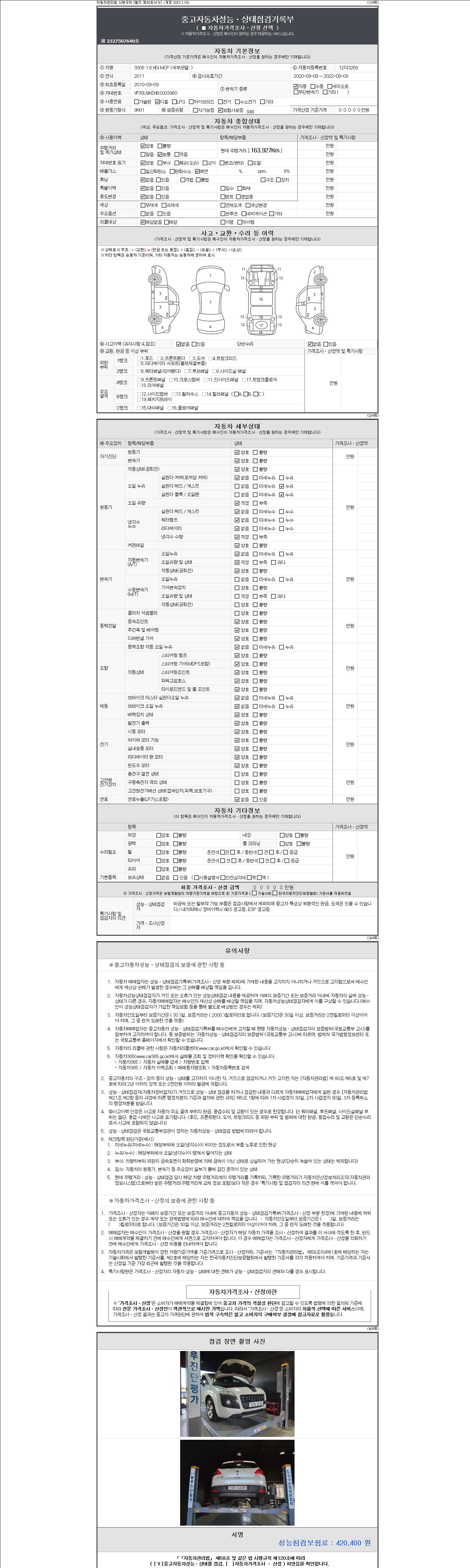 2. 차량 등록증이나 성능점검지 등을 상담자에게 요청및 확인하시고 사전에 미리 점검 하시기를 권유드립니다.