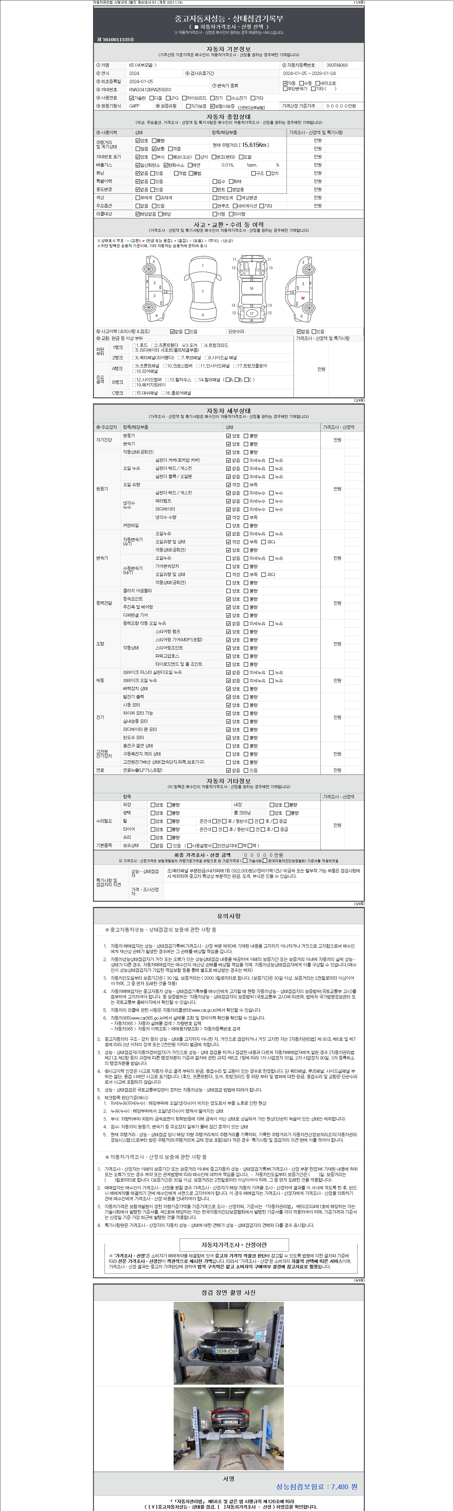 주행거리 15,615 km 차량번호 380마4069