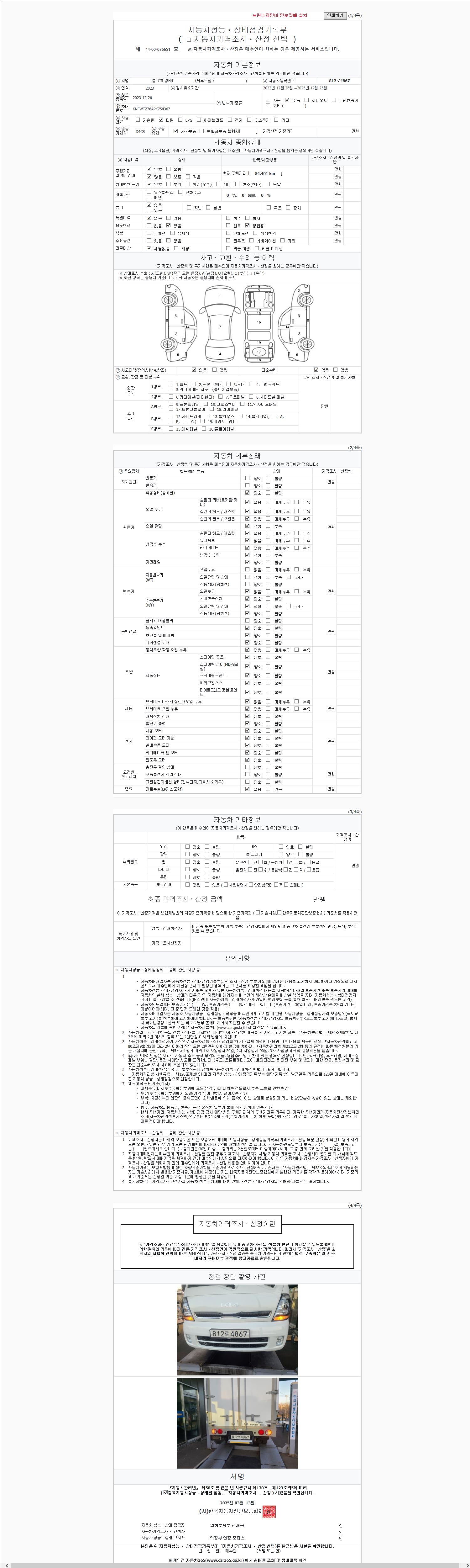 사고유무 성능기록부 참조 제시번호 제 2025038668 호