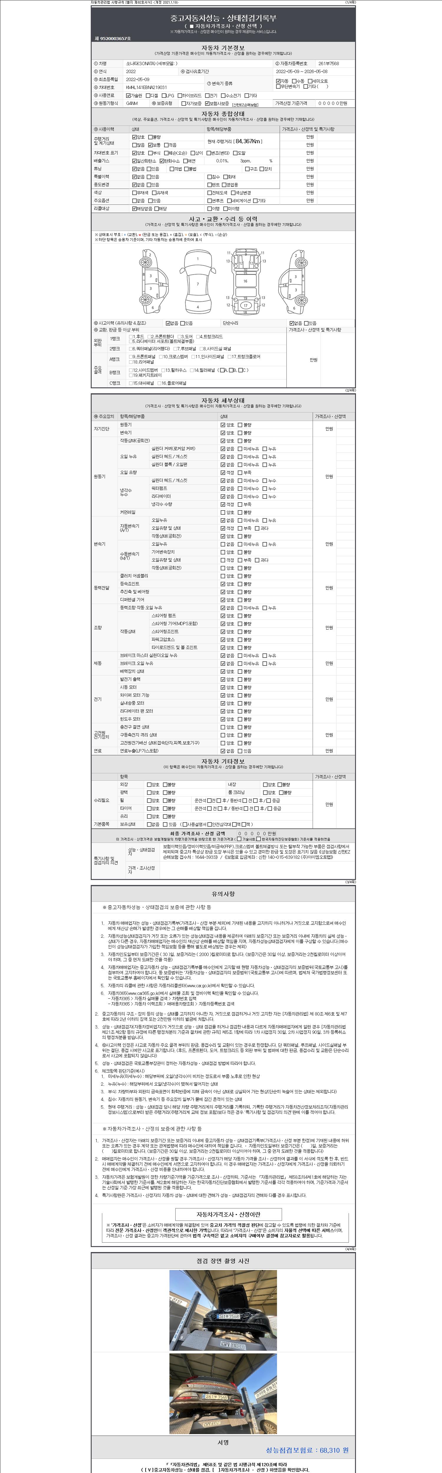 2. 차량 등록증이나 성능점검지 등을 상담자에게 요청및 확인하시고 사전에 미리 점검 하시기를 권유드립니다.