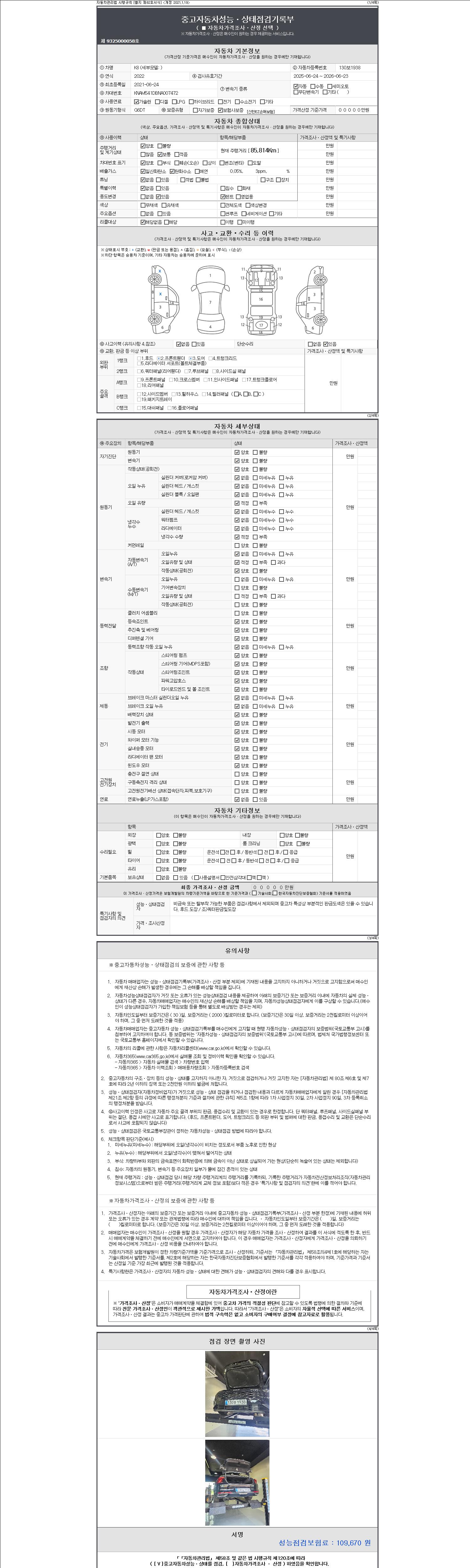 2. 차량 등록증이나 성능점검지 등을 상담자에게 요청및 확인하시고 사전에 미리 점검 하시기를 권유드립니다.
