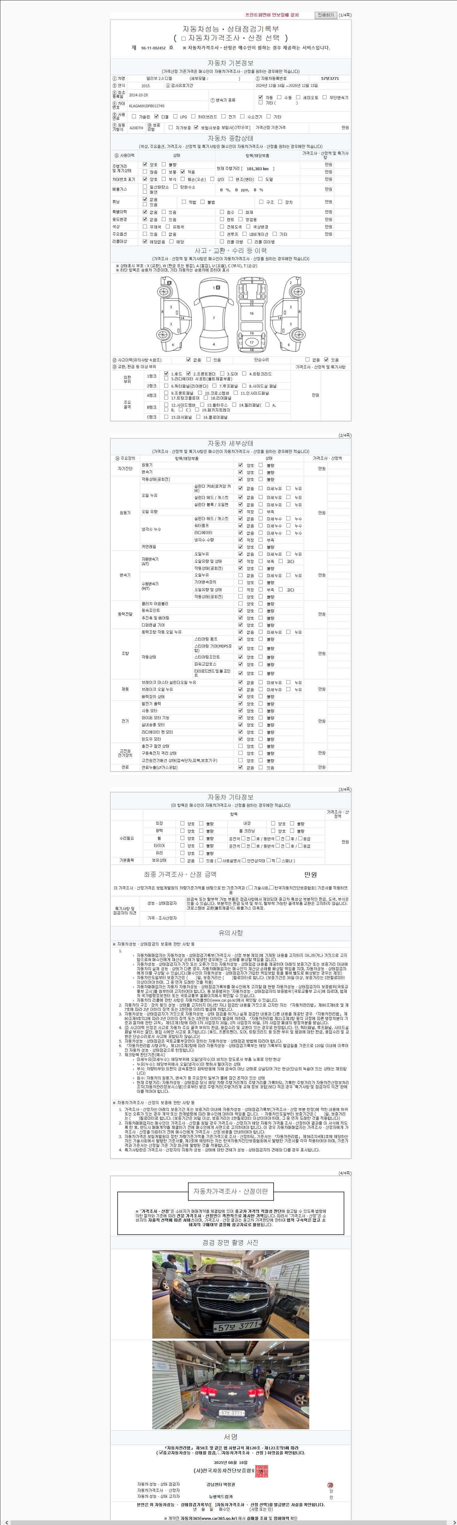 2. 차량 등록증이나 성능점검지 등을 상담자에게 요청및 확인하시고 사전에 미리 점검 하시기를 권유드립니다.