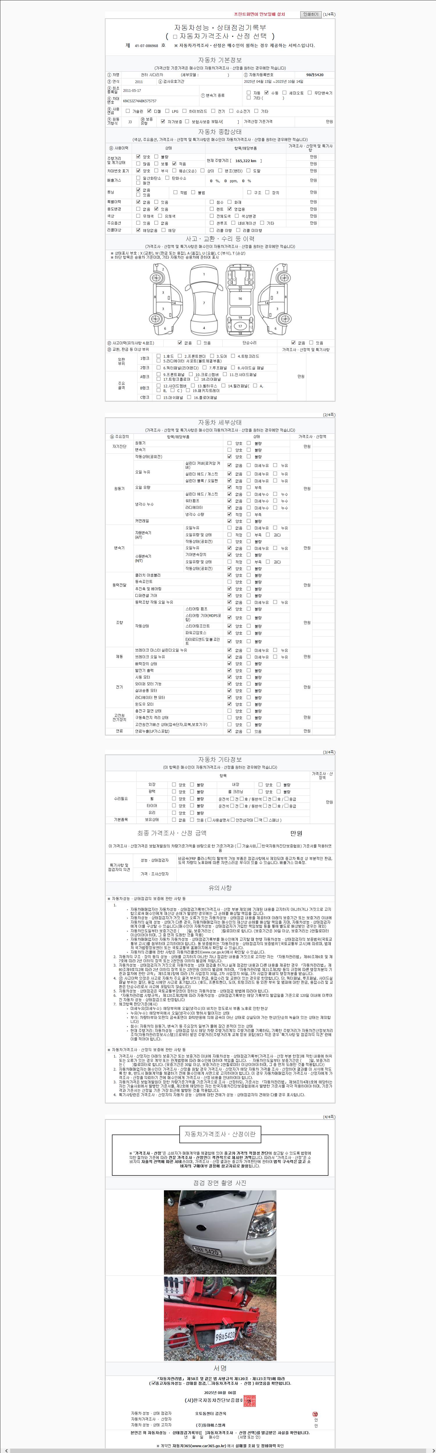 2. 차량 등록증이나 성능점검지 등을 상담자에게 요청및 확인하시고 사전에 미리 점검 하시기를 권유드립니다.