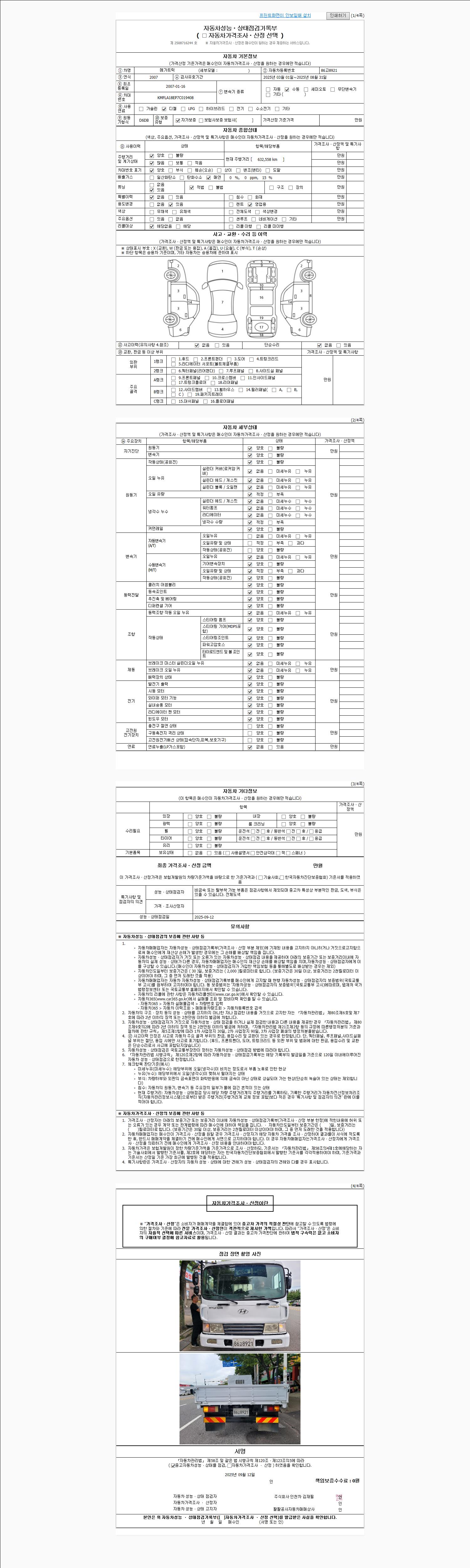2. 차량 등록증이나 성능점검지 등을 상담자에게 요청및 확인하시고 사전에 미리 점검 하시기를 권유드립니다.