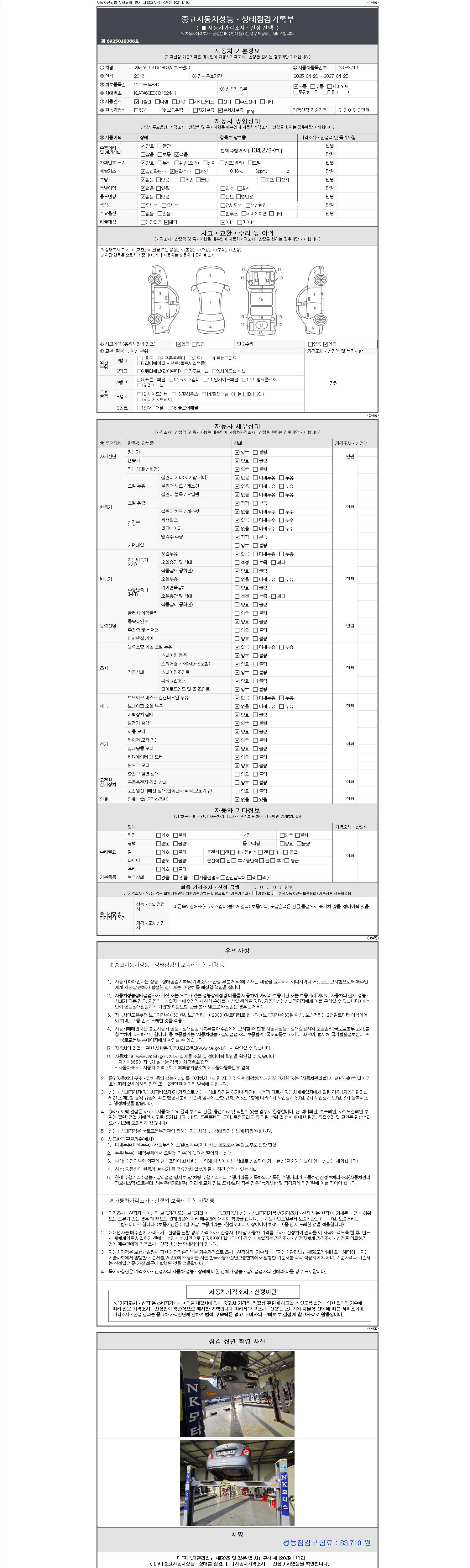 -중고자동차 매매업자를 통해 차량을 구입하실 경우 반드시 "중고자동차 성능, 상태점검 기록부"를 교뷰 받으셔야 하며, 매매업자는 반드시 의무 교부 하여야 압니다.