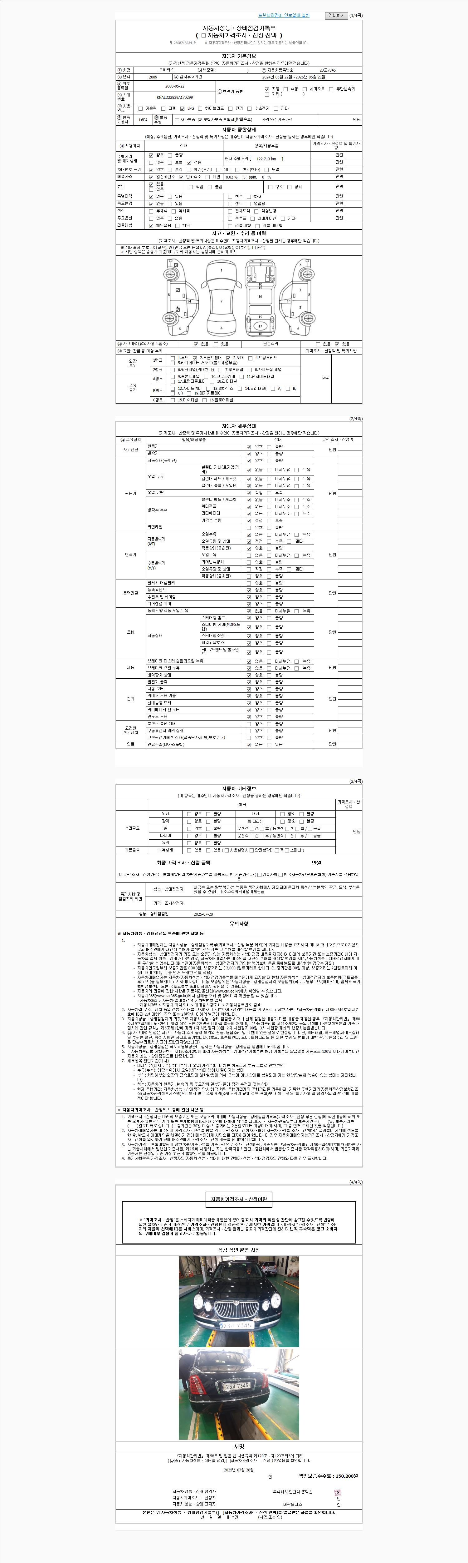 사고유무 성능기록부 참조 제시번호 제 2025040816 호