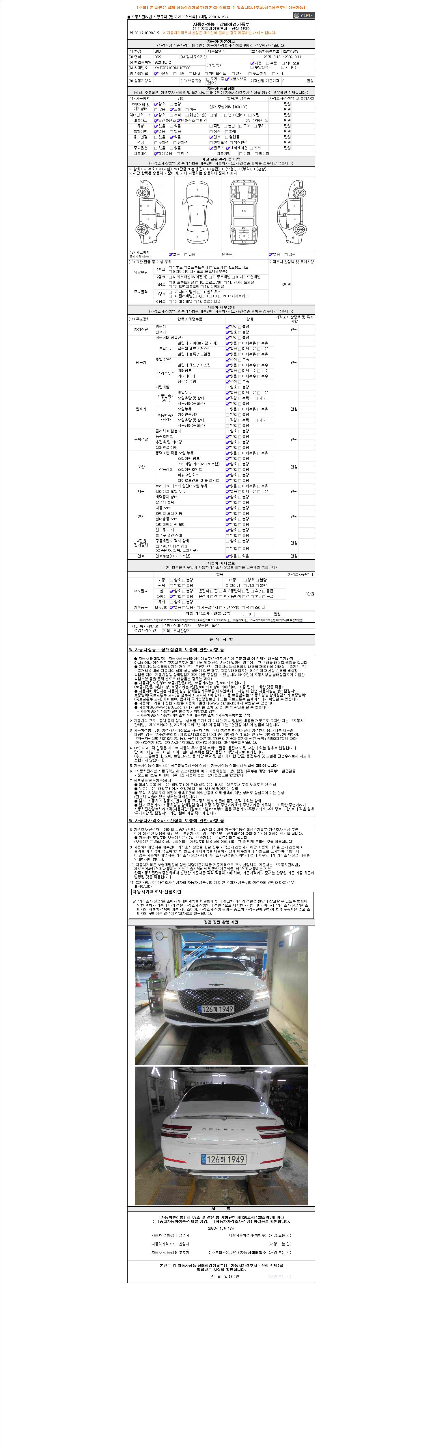 사고유무 성능기록부 참조 제시번호 제 2025138780 호