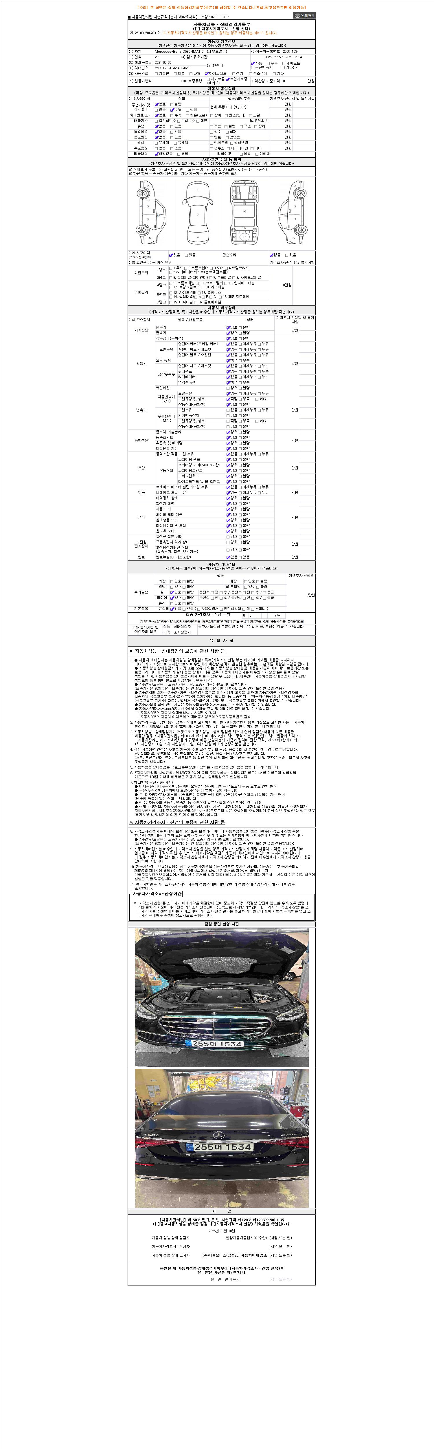 사고유무 성능기록부 참조 제시번호 제 2025133630 호