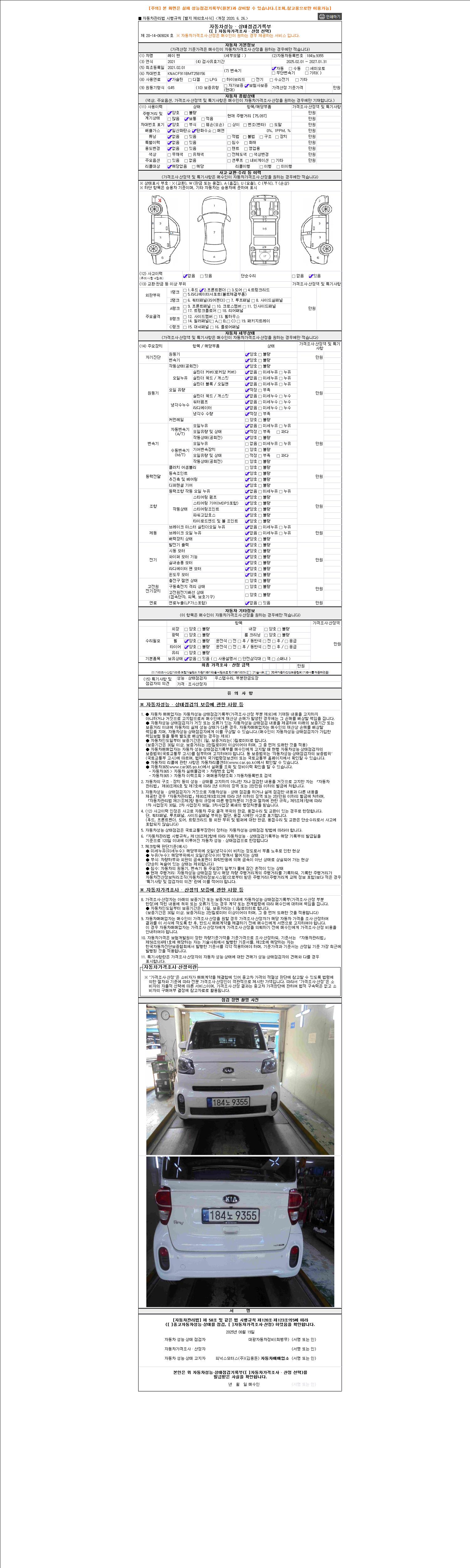 2. 차량 등록증이나 성능점검지 등을 상담자에게 요청및 확인하시고 사전에 미리 점검 하시기를 권유드립니다.